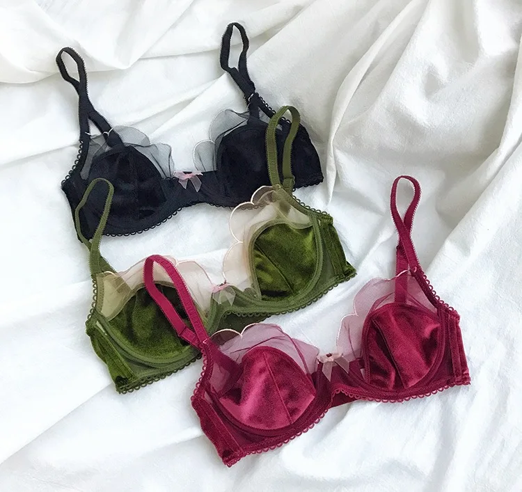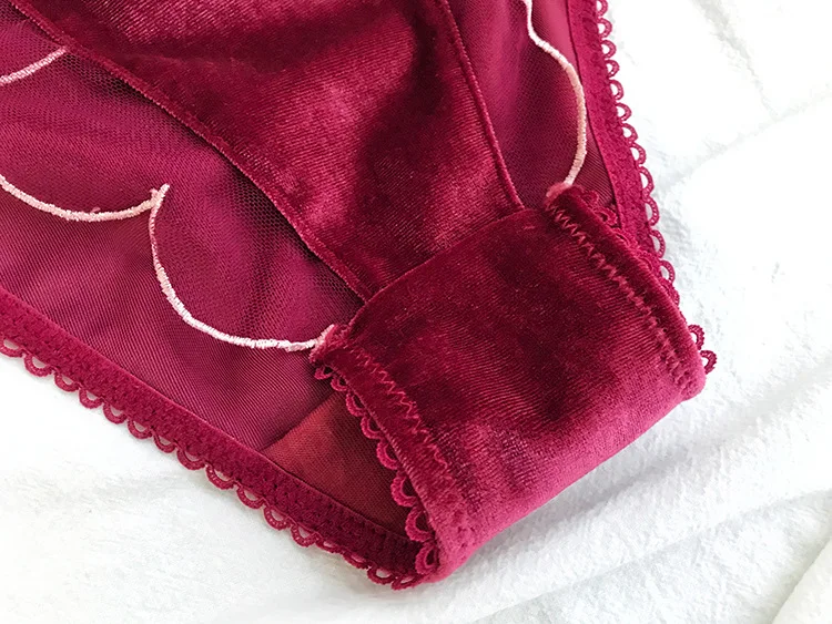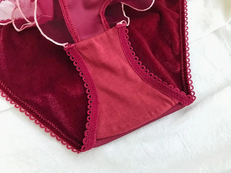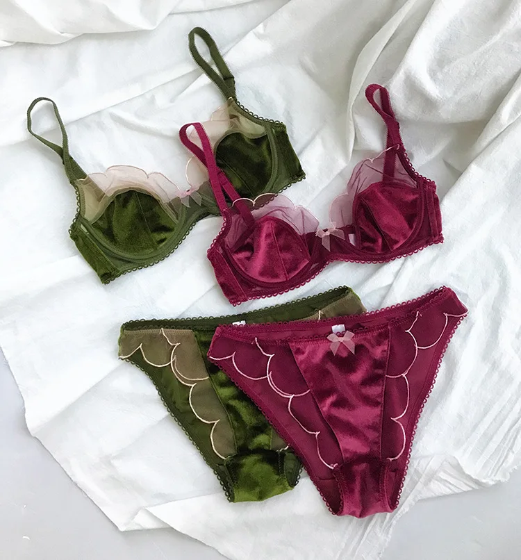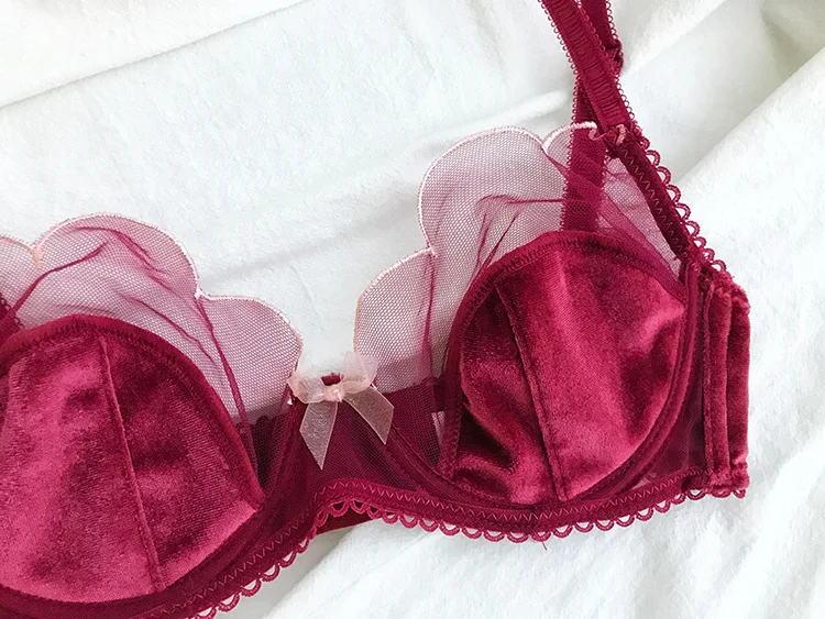 Комплект женского кружевного нижнего белья, бархатный бюстгальтер, трусики, пикантное дышащее нижнее белье