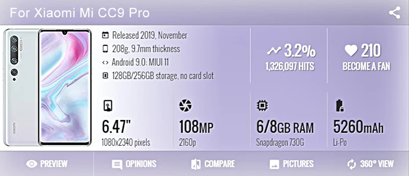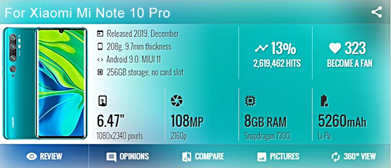 Номер моделиFor Xiaomi Note 10/ Note 10 Pro/ CC9 Pro