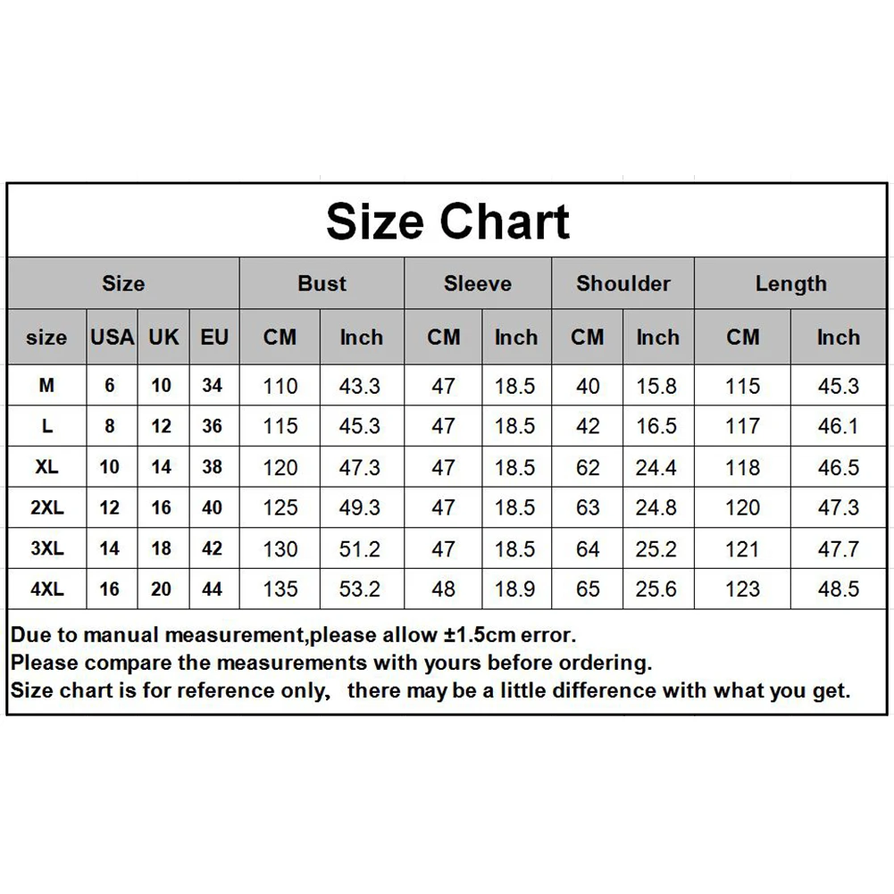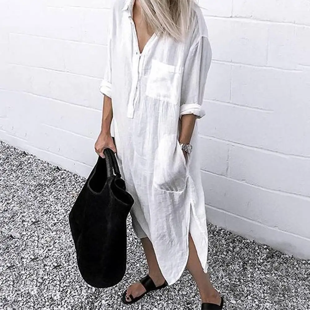 Летнее женское однотонное платье M-4XL с длинными рукавами и карманами, с разрезом по бокам, длинное платье-рубашка, вечерние платья для клуба и пляжа Характеристики: Сочетание рубашки с платьем-это креативный и стильный дизайн. Свободное платье-рубашка позволяет удобно носить его в жаркие дни. Одежда сидела идеально подходит для вечерние, сбор, путешествия, Уличная одежда, коктейль и т. д. Тип: Платье Тип размера: Обычный Пол: женщин Материал: нейлон, полиэстер, спандекс Стиль: Модный Длина рукава: длинный рукав Тип воротника: отложной воротник Длина платья: длинное платье Уход За Одеждой: ручная стирка Особенности: с разрезом по бокам, с карманами, свободный стиль, подходит ко всему Информация о размере: [Наши Размеры M] Бюст: 110 см/43,3 ", плечо: 40 см/15,7", рукав: 47 см/18,5 ", Длина: 115 см/45,3" (прибл.) [Наши Размеры L] Бюст: 115 см/45,3 ", плеча: 42 см/16,5", рукав: 47 см/18,5 ", Длина: 117 см/46,1" (прибл.) [Наши Размеры XL] Бюст: 120 см/47,2 ", плеча: 62 см/24,4", рукав: 47 см/18,5 ", Длина: 118 см/46,5" (прибл.) [Наши Размеры 2XL] Бюст: 125 см/49,2 ", плеча: 63 см/24,8", рукав: 47 см/18,5 ", Длина: 120 см/47,2" (прибл.) [Наши Размеры 3XL] Бюст: 130 см/51,2 ", плечо: 64 см/25,2", рукав: 47 см/18,5 ", Длина: 121 см/47,6" (прибл.) [Наши Размеры 4XL] Бюст: 135 см/53,1 ", плеча: 65 см/25,6", рукав: 47 см/18,5 ", Длина: 123 см/48,4" (прибл.) Примечания: Пожалуйста, обратитесь к нашей таблице размеров и выберите правильный размер. Благодаря светильник и экрана Цвет Товара может быть s светильник ly отличается из-за характеристик монитора компьютера. Посылка включает в себя: 1 платье (сумка в комплект не входит)