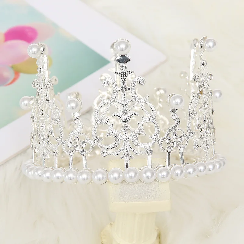 Тиара Золотая, жемчужная корона, украшение для торта, декоративное элегантное украшение для свадебного торта, дня рождения, 1 шт.