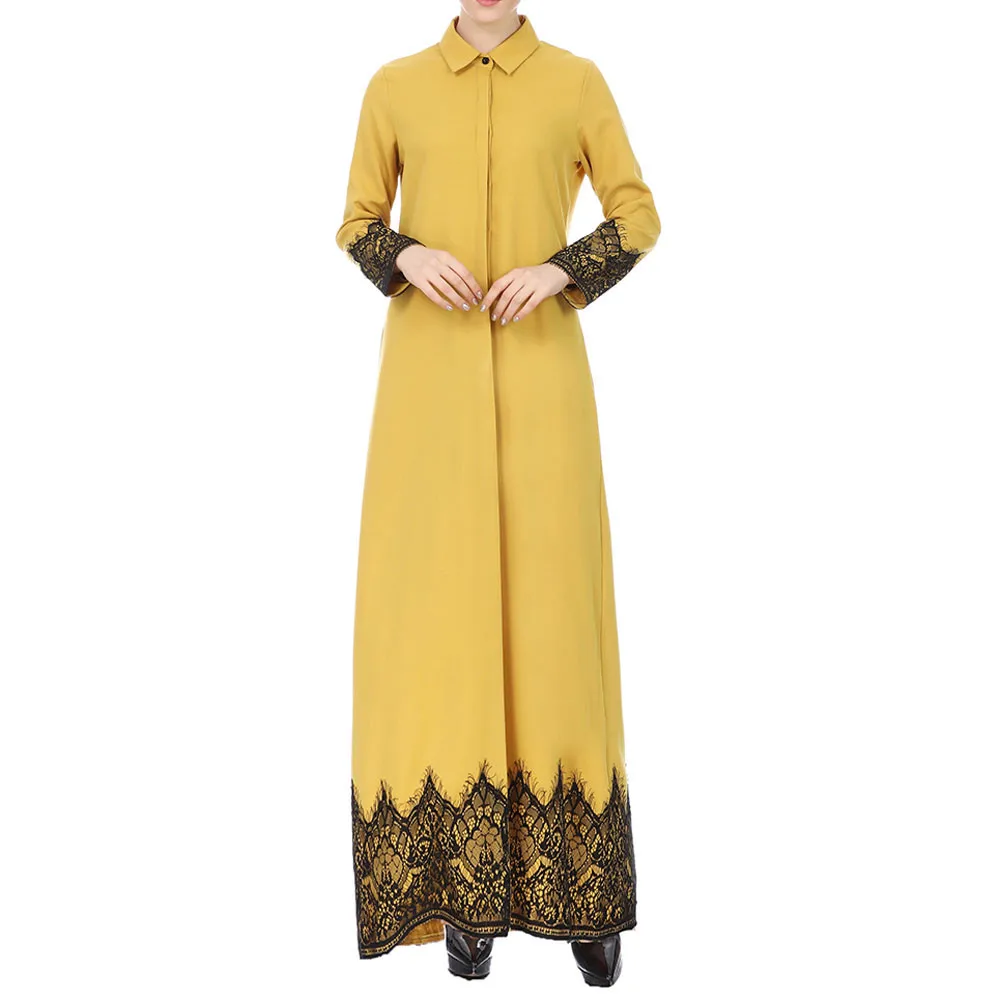 Мусульманские женщины Мусульманское кимоно абайя макси с кружевной отделкой спереди