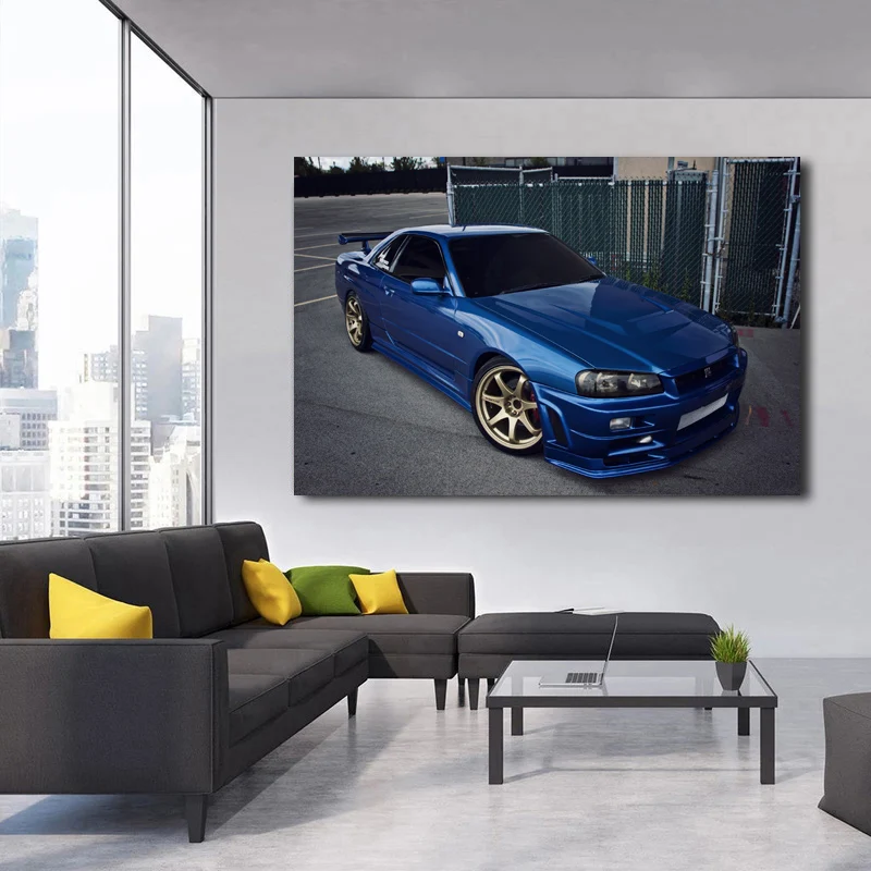 Nissan Skyline GT-R R34 синие старые автомобили суперкар плакаты на холсте с принтом домашний декор настенное Искусство Декор для гостиной