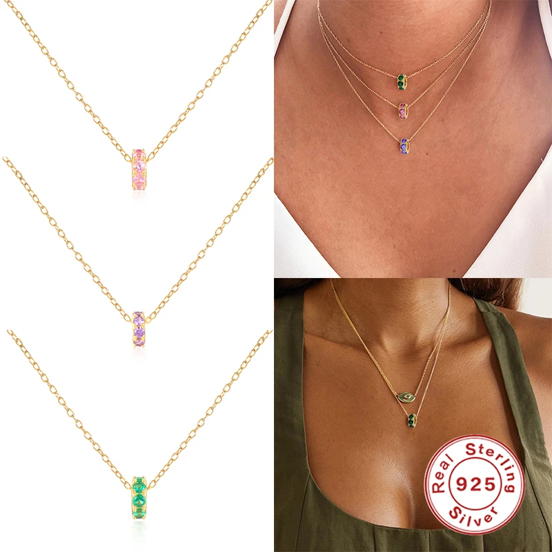 Автоклав 925 Серебряное ожерелье для женщин Цветной с украшением в виде кристаллов амулет в виде ожерелья цепи ювелирные украшения ожерелье бижутерия для женщин