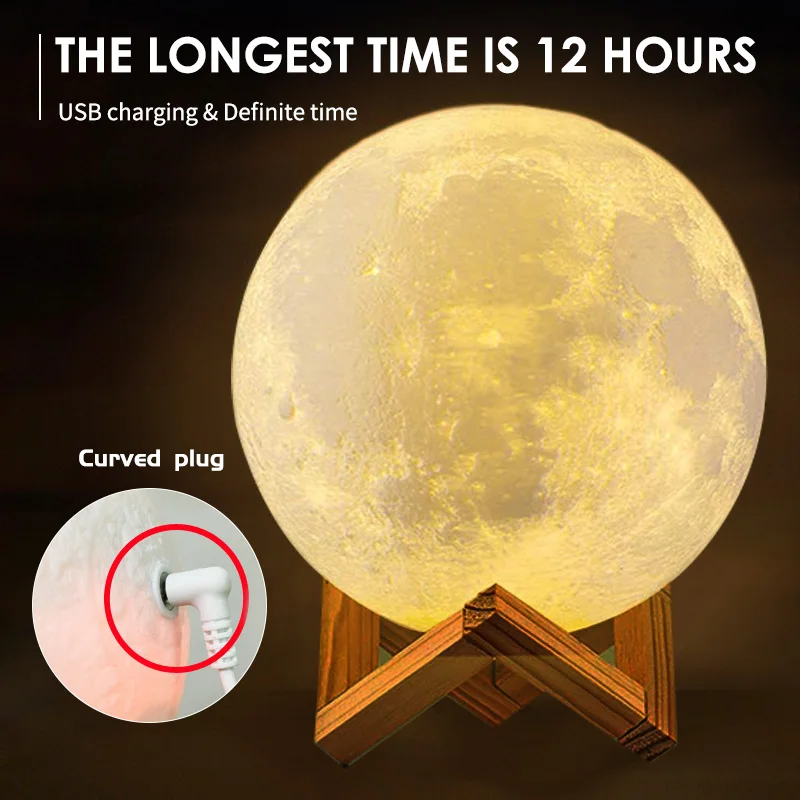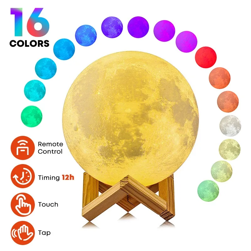 Лампа в форме Луны, светодиодный ночник с USB, перезаряжаемый цветной сенсорный переключатель, 3D печать, светсветильник в форме Луны для украшения комнаты, настольная лампа