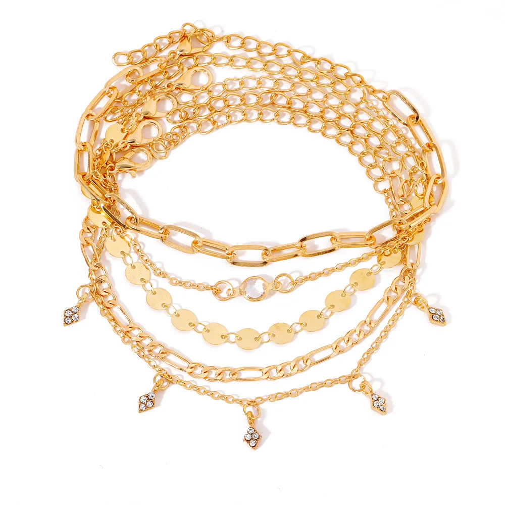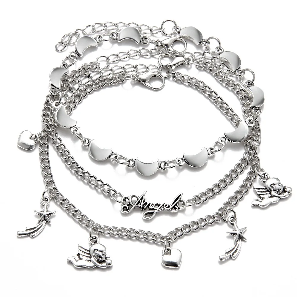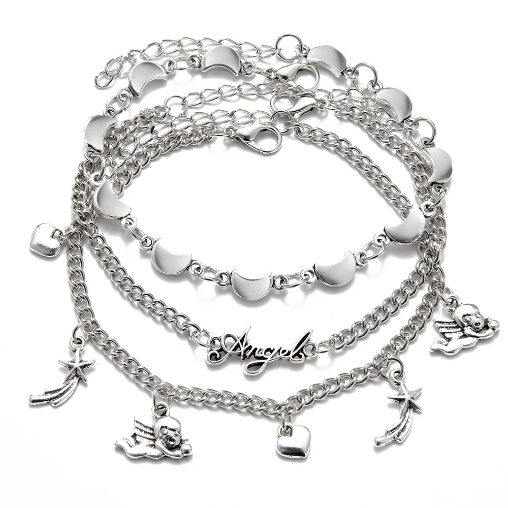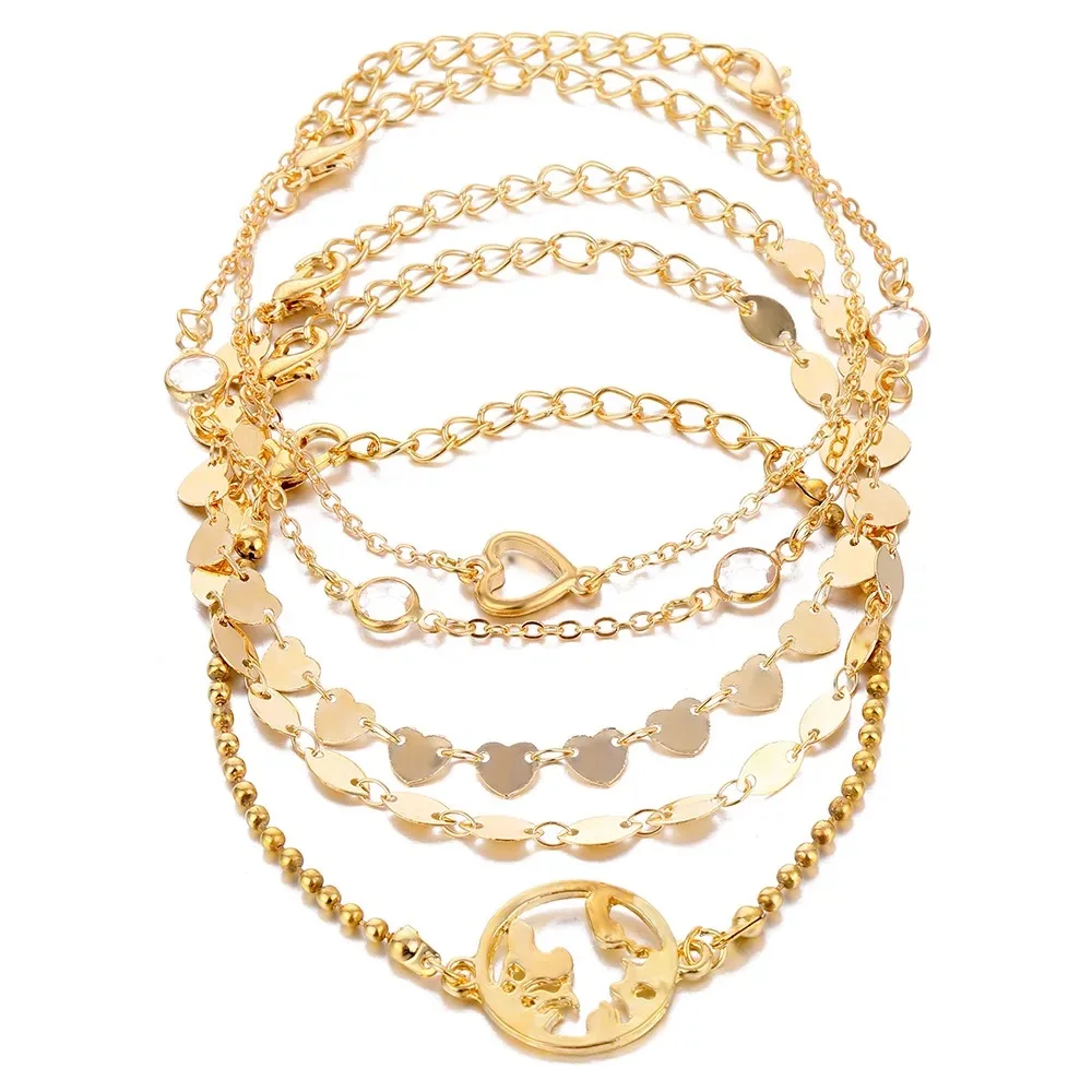 Женский ножной браслет на лодыжку, золотистые и Серебристые браслеты-анклеты в форме сердца, 5 шт. в комплекте
