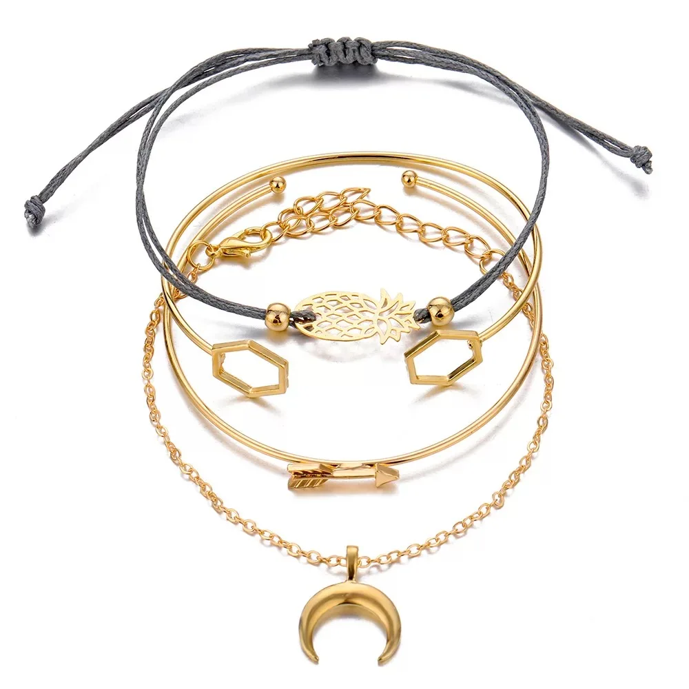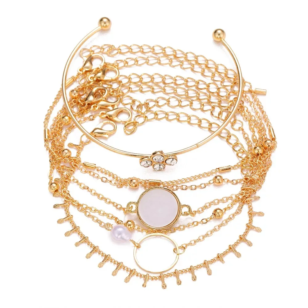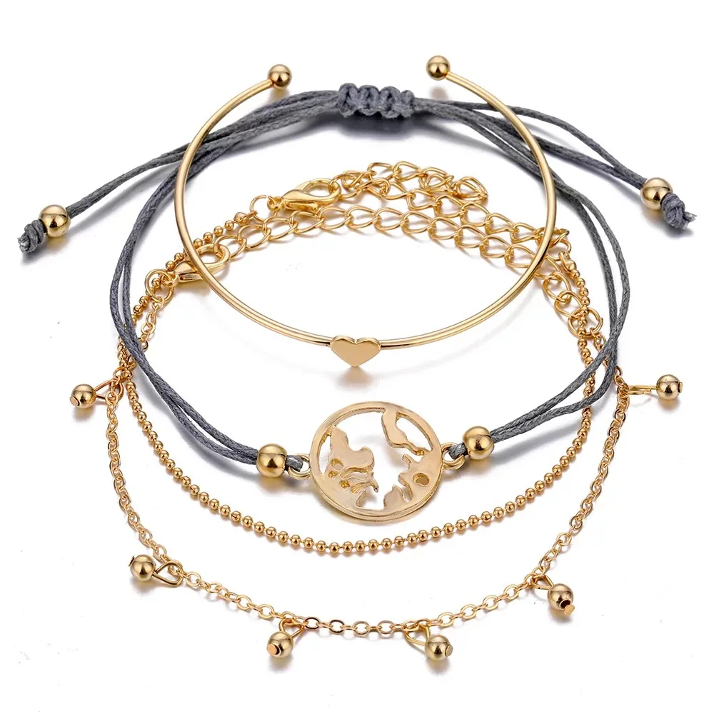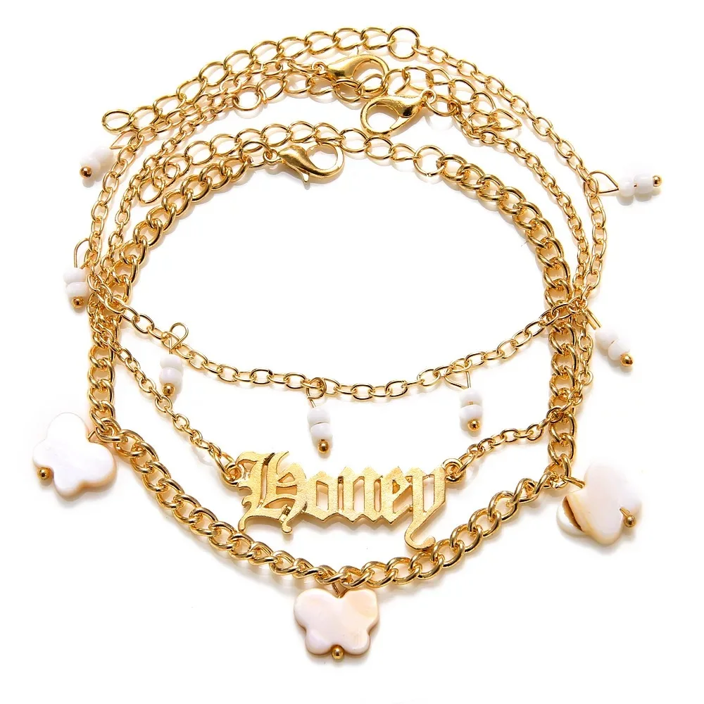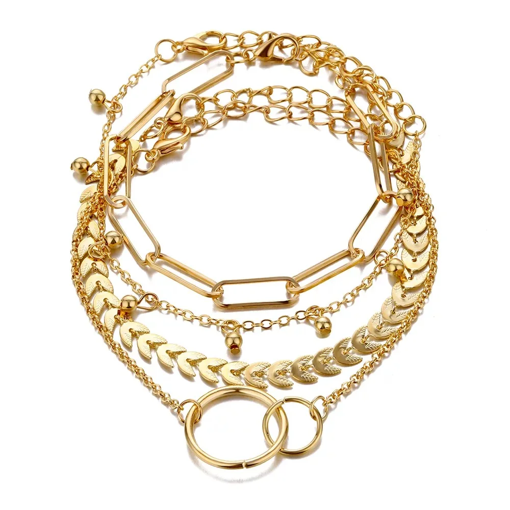 Женский ножной браслет на лодыжку, золотистые и Серебристые браслеты-анклеты в форме сердца, 5 шт. в комплекте