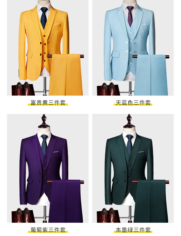 Костюм Джентльмена (пиджак + брюки + жилет), Классический облегающий свадебный костюм для жениха, деловой повседневный костюм из 3 предметов, M-6XL