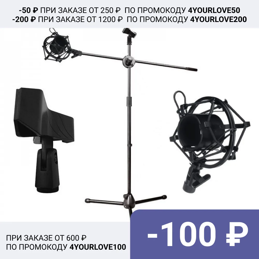 Стойка для микрофона напольная журавль Pro-55 с держателем «прищепка» и металлическим держателем «паук».Телескопическая микрофонная стойка-журавль на треноге — практичная стойка для сценических и вокальных микрофонов, можно использовать в студии звукозаписи. Стойка имеет складную конструкцию с дополнительной стрелой (плечом), длина которой равна 67 см. Стрела закреплена на треножной стойке-штативе с регулируемой высотой. Высота микрофонной стойки может изменяться в пределах от 77 см до 135 см, в зависимости от требований музыкантов и исполнителей. Металлический противоударный держатель защищает микрофон от перехвата вибраций внешней среды, которые негативно влияют на качество звуковой записи.Особенности:- Подходит для тех, кто делает первые шаги в записи подкастов, стримов или видеоблогов;- Два держателя для микрофона (паук и прищепка);- Диаметр резьбы держателя микрофона: 5/8" с переходником на 3/8";- Подходит для микрофонов диаметром 40-45 мм;- Складные ножки;- Металлическая основа.Характеристики:- Радиус основания: 30 см;- «Журавль»: 67 см;- Высота стойки: 77-135 см;- Внешний диаметр «паука»: 9.5 см;- Внутренний диаметр «паука»: 4.5 см;- Высота «паука»: 7.8 см;- Для микрофонов диаметром: 4-4.5 см.В комплекте: стойка, журавль, держатель для микрофона «прищепка», держатель для микрофона «паук».Внимание! Допустим разброс в размерах, т.к. все замеры были сделаны вручную.