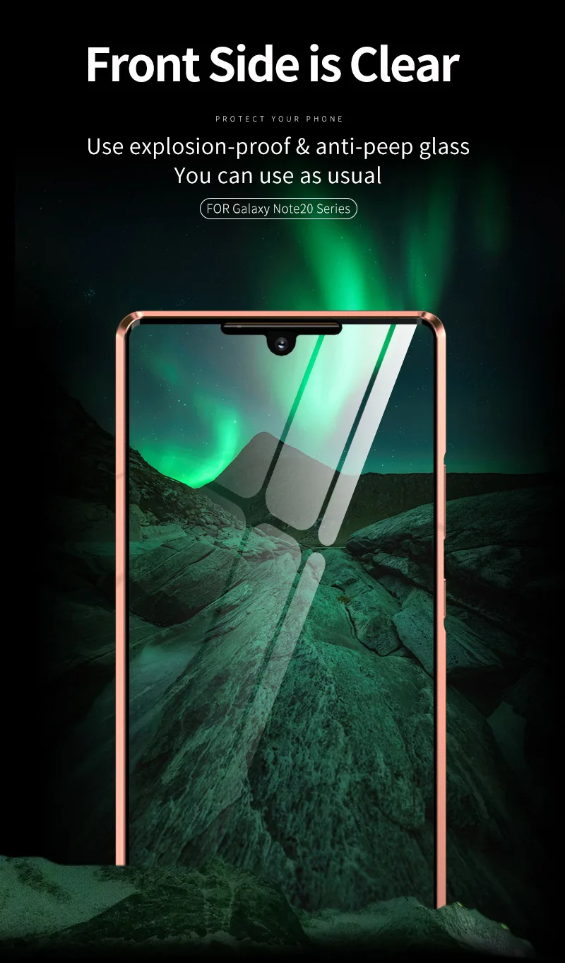 + Металлическая рамка + двухстороннее закаленное стекло, обеспечьте полную защиту вашего телефона на 360 градусов