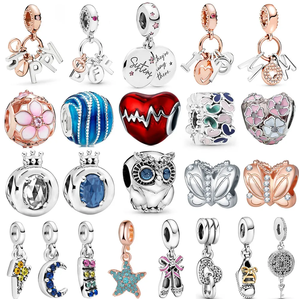 1 шт. подвеска в форме Совы бабочки членов семьи буквы кулон бусины для самостоятельного изготовления украшений, подходят к оригиналу Pandora, очаровательный браслет для женщин ювелирные изделия делая подарки