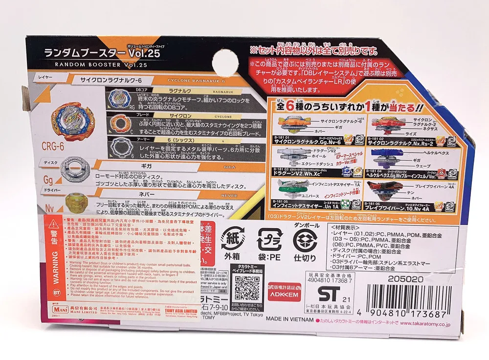 TAKARA TOMY Beyblade Burst Cyclone Ragnarque.Gg.Nv-6 B-181 случайный усилитель Vol.25