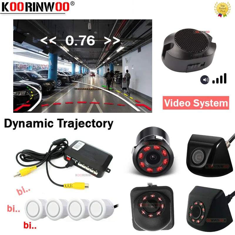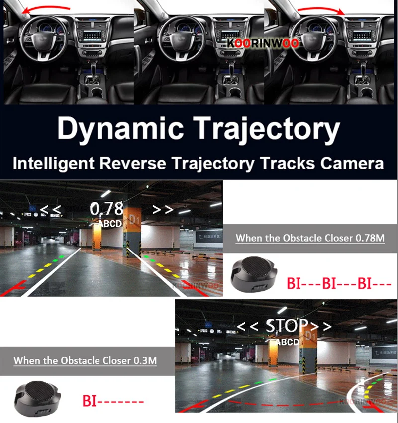 Интеллектуальная камера заднего вида Koorinwoo с динамическим багажником, широкоугольной камерой заднего вида, видеопроцессором, датчиком парковки, реверсивным для автомобильного радио, Android, DVD