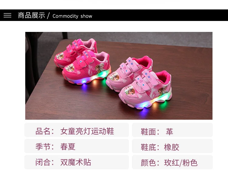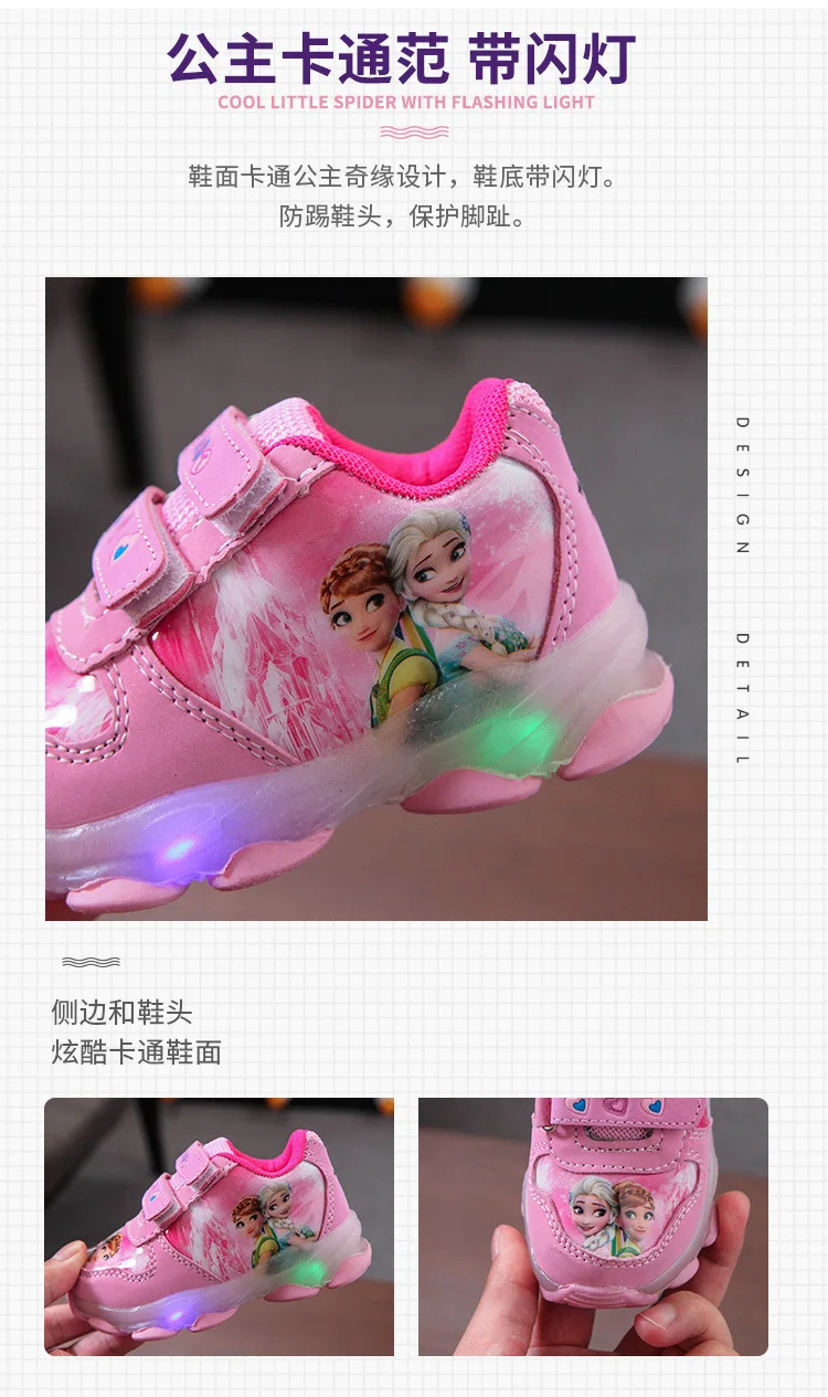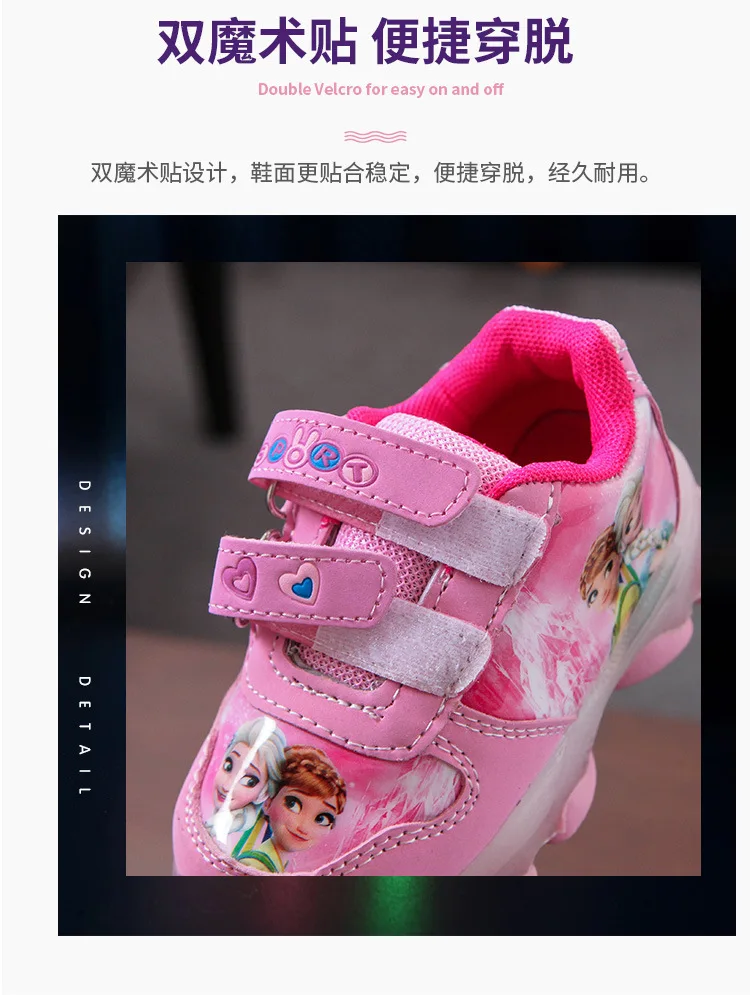 Детская спортивная обувь Disney 2021 года; Яркая теннисная обувь с подсветкой и рисунком принцессы для детей; Disney Frozen