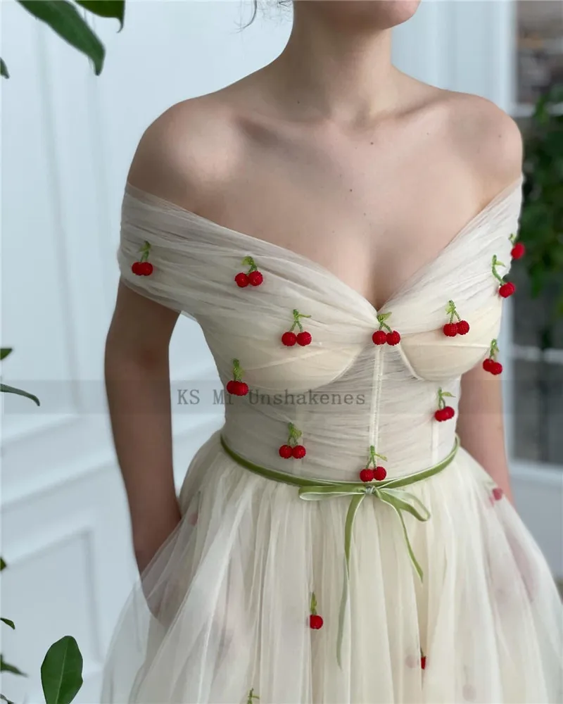 Бежевое короткое платье для выпускного вечера, модель 2021 года, Вишневое платье, пикантное вечернее платье с открытыми плечами, платье для выпускного вечера средней длины с поясом