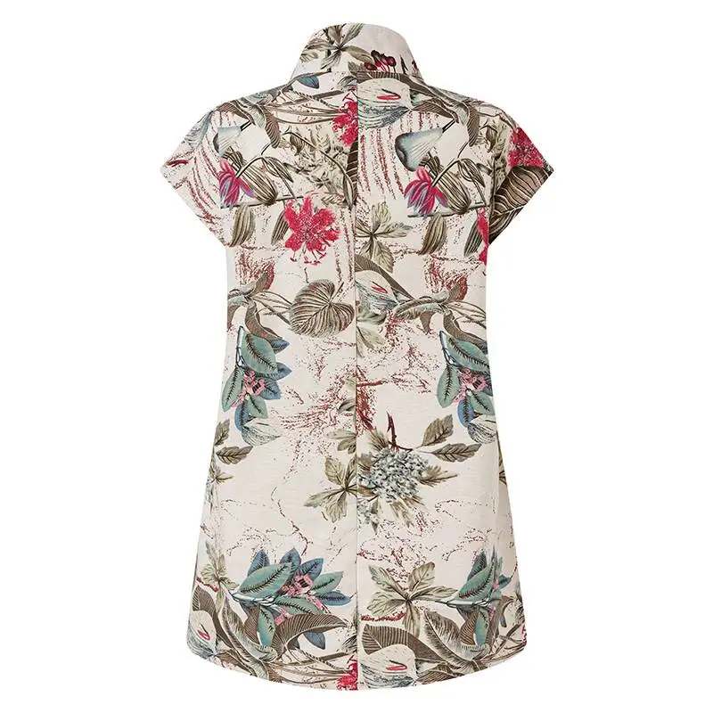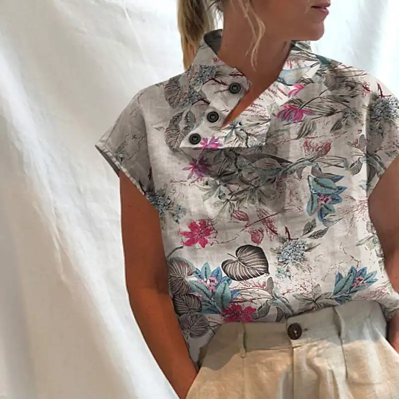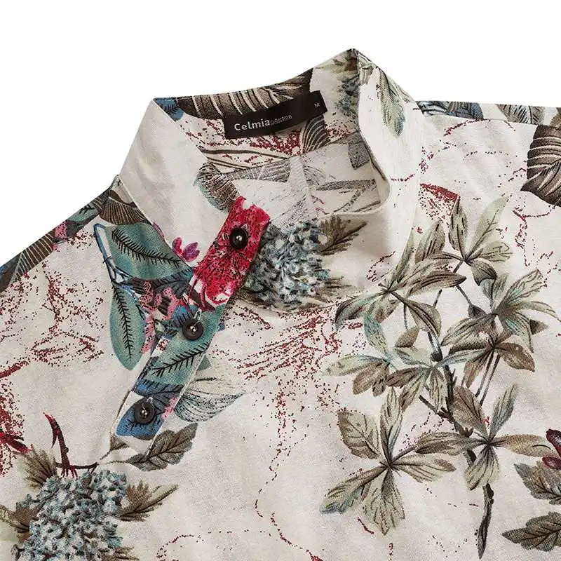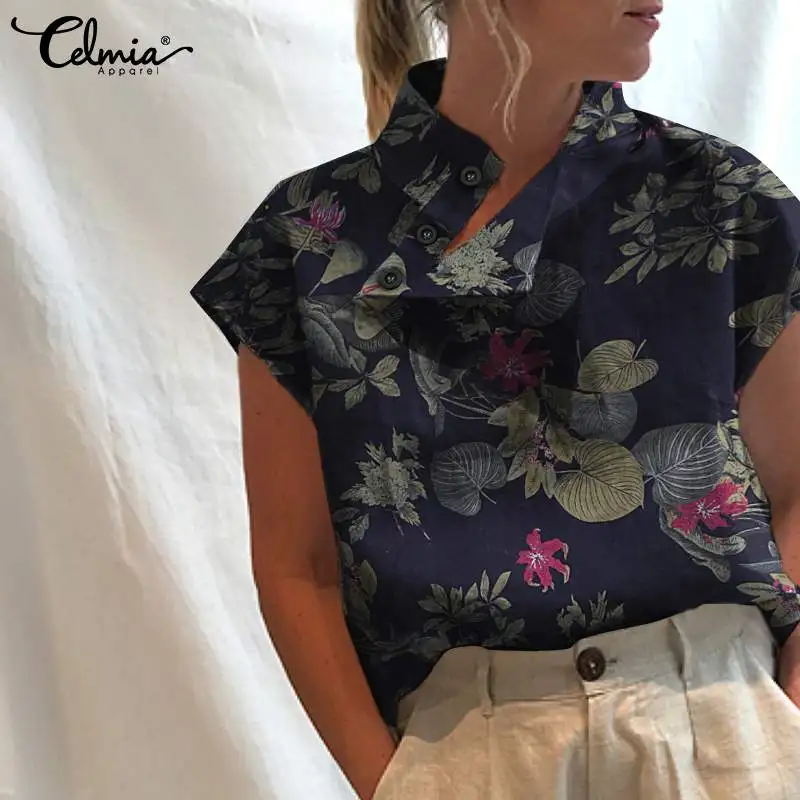 Блузка Celmia женская с цветочным принтом, винтажная хлопковая Повседневная модная рубашка на пуговицах, с высоким воротником и коротким рукавом, лето 2022