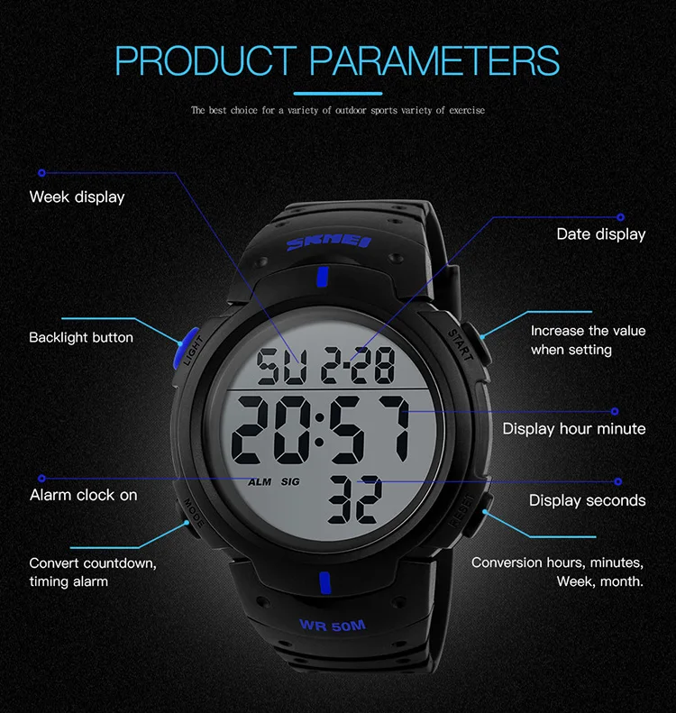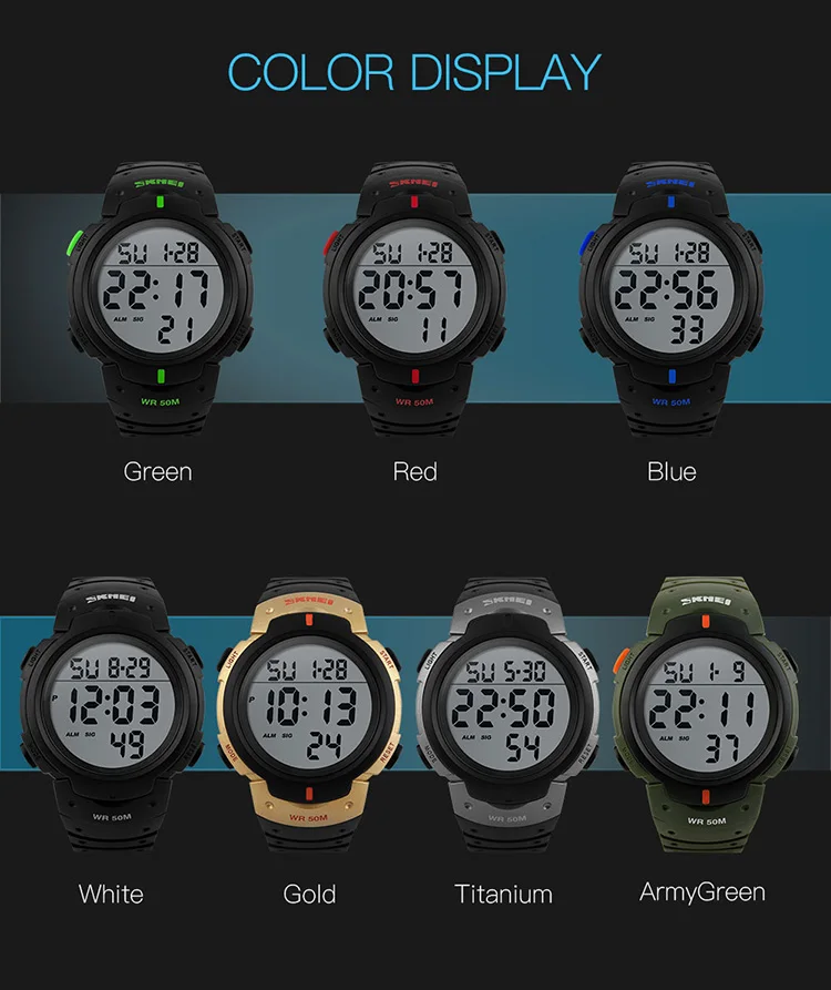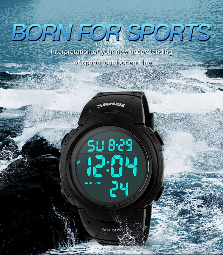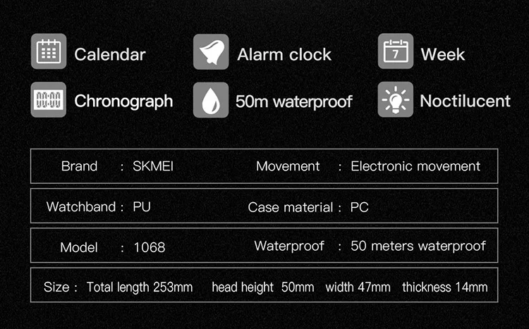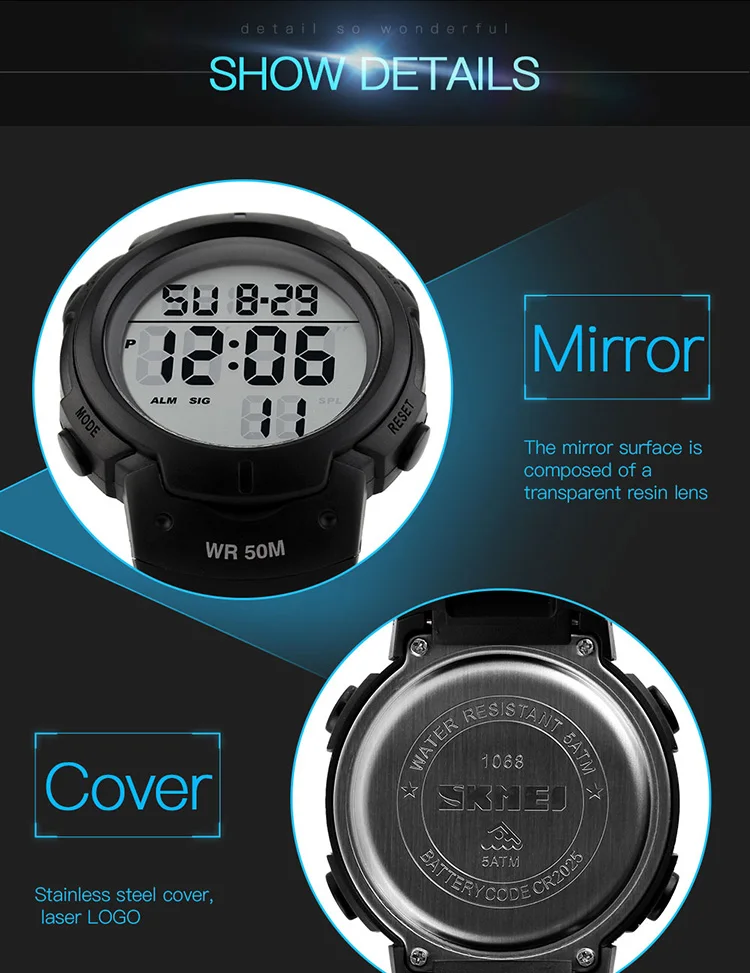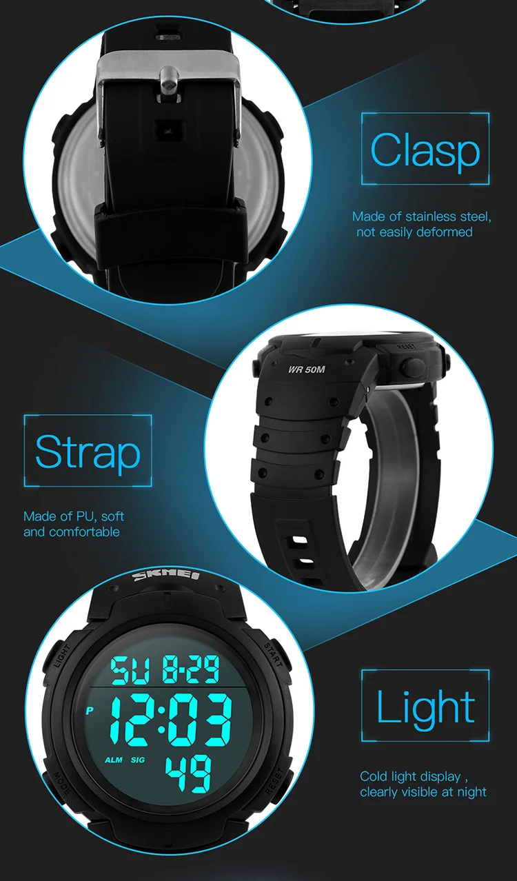 Часы мужские SKmei с хронографом, электронные, водонепроницаемые, с будильником, для учеников средней школы, 1068