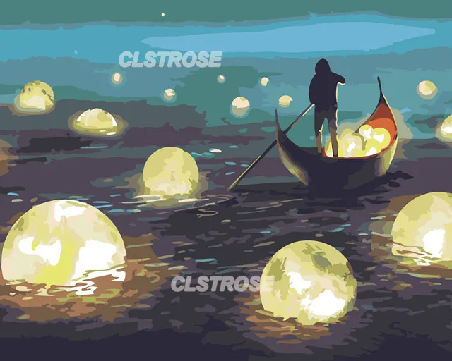 Алмазная живопись мультфильм лето озеро пруд Лодка листья лотоса Зо...