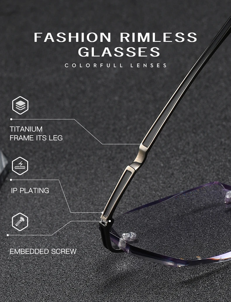 Оправа для очков ZIROSAT Мужская титановая без оправы, модная брендовая дизайнерская Прозрачная Оптическая оправа для очков по рецепту при близорукости, 9133
