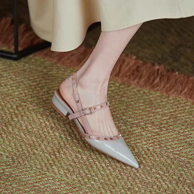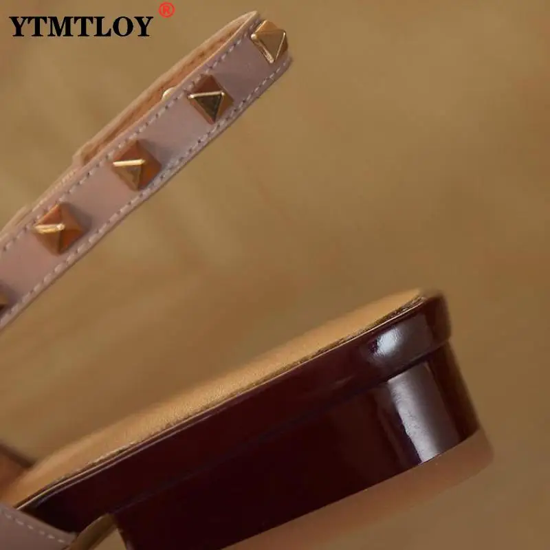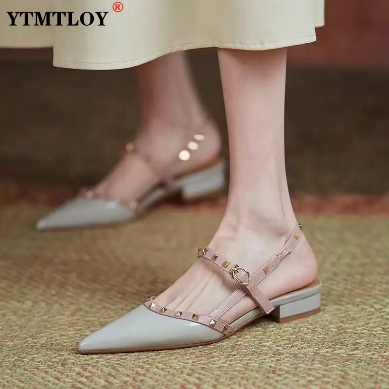 Сандалии женские роскошные 2021 модная обувь с перфорацией типа броги на низком каблуке толстом каблуке из натуральной кожи; С острым закрытым носком на высоком каблуке качественная модельная обувь на каблуке-столбике, сексуальные, на заклепках