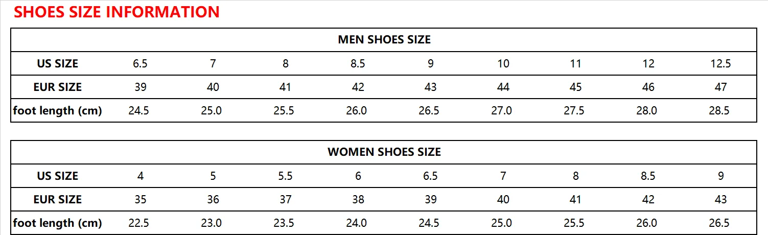 Дорогой друг, Добро пожаловать в наш магазин. Если вы реселлер и у вас есть заказы на прямые поставки, пожалуйста, свяжитесь с нами по Aliexpress сообщениям, мы сделаем VIP-ссылки для вашей покупки и предоставим вам лучшие цены и услуги. Надеемся на сотрудничество с вами! При покупке нашей обуви, пожалуйста, обратите внимание на информацию о размере обуви и выбирайте размер обуви в соответствии с длиной Вашей стопы.