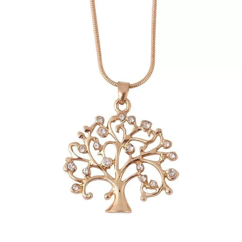 Модное ожерелье с подвеской Древо жизни, круглый кулон с кристаллами, полая подвеска серебряного цвета, ожерелье из розового золота, новинка 2021, украшения для женщин