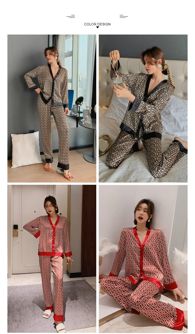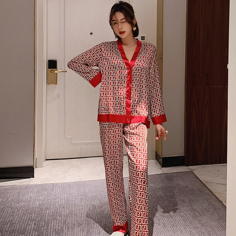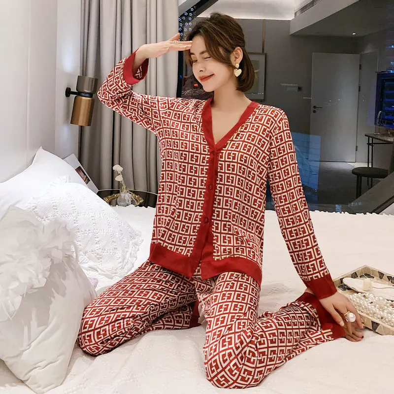 Новинка весны, роскошный стильный женский пижамный комплект 2022, модная одежда для отдыха с принтом букв, шелковая одежда для досуга, домашняя одежда, женская ночная сорочка