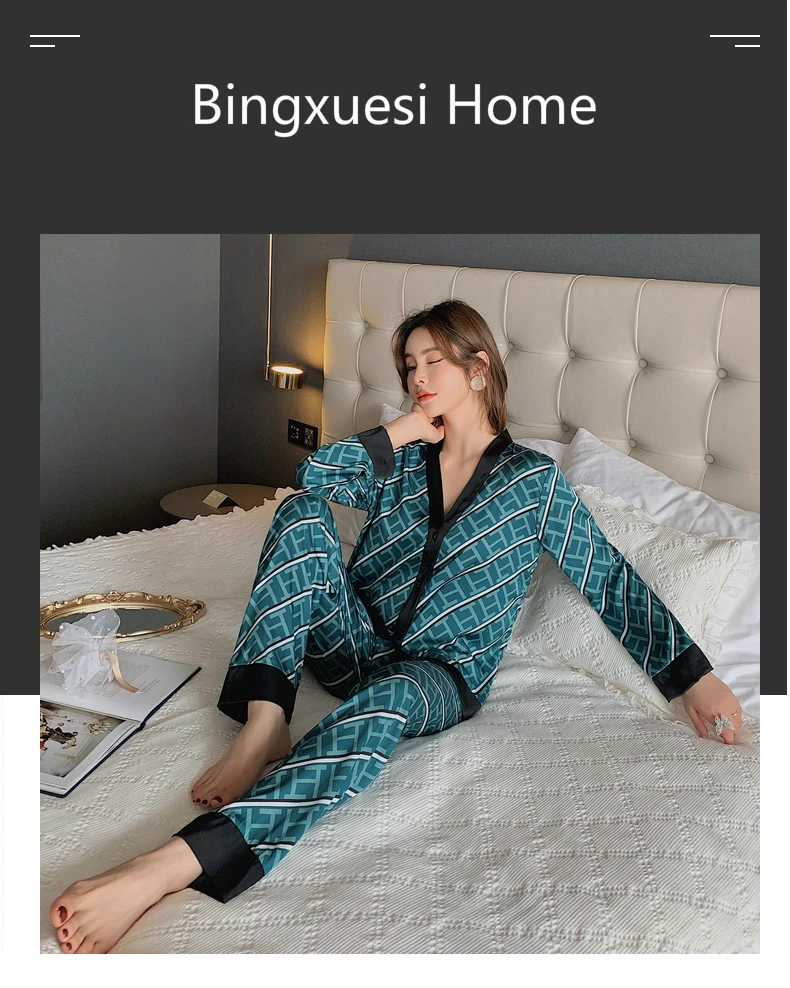 Пижама женская шелковая, с V-образным вырезом и длинным рукавом