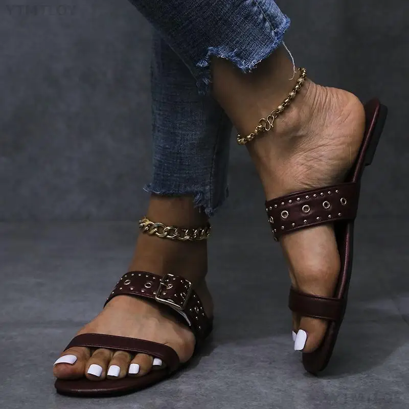 Сандалии женские с открытым носком, пикантные туфли на плоской подо...
