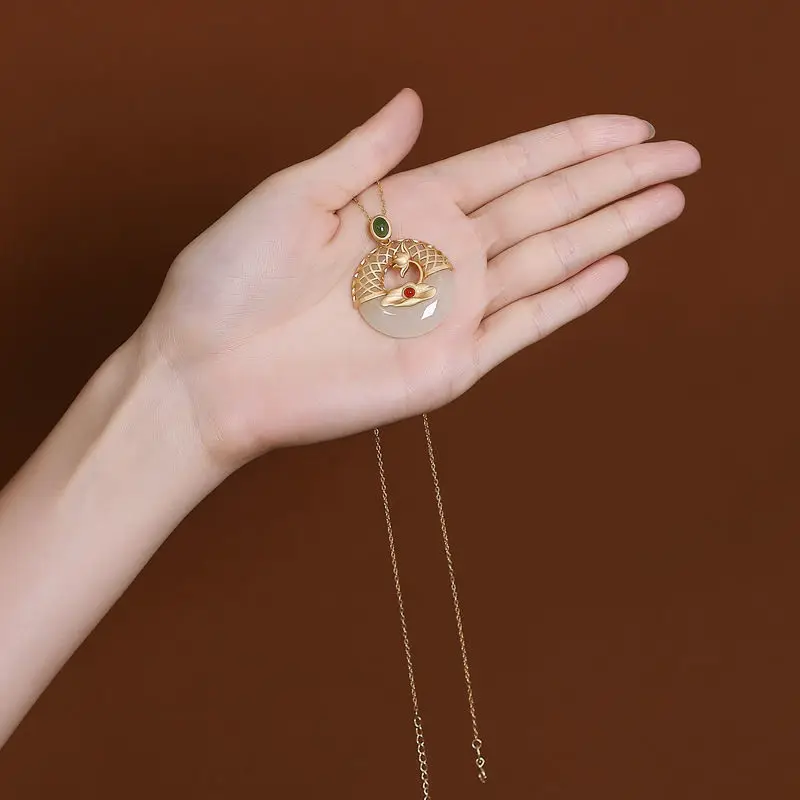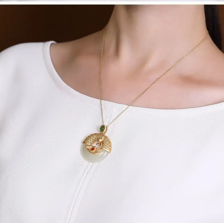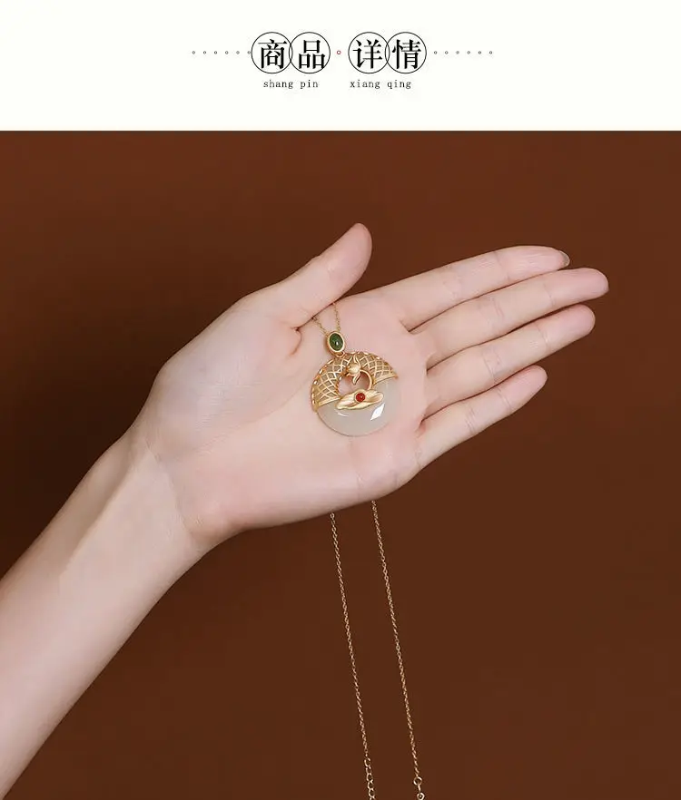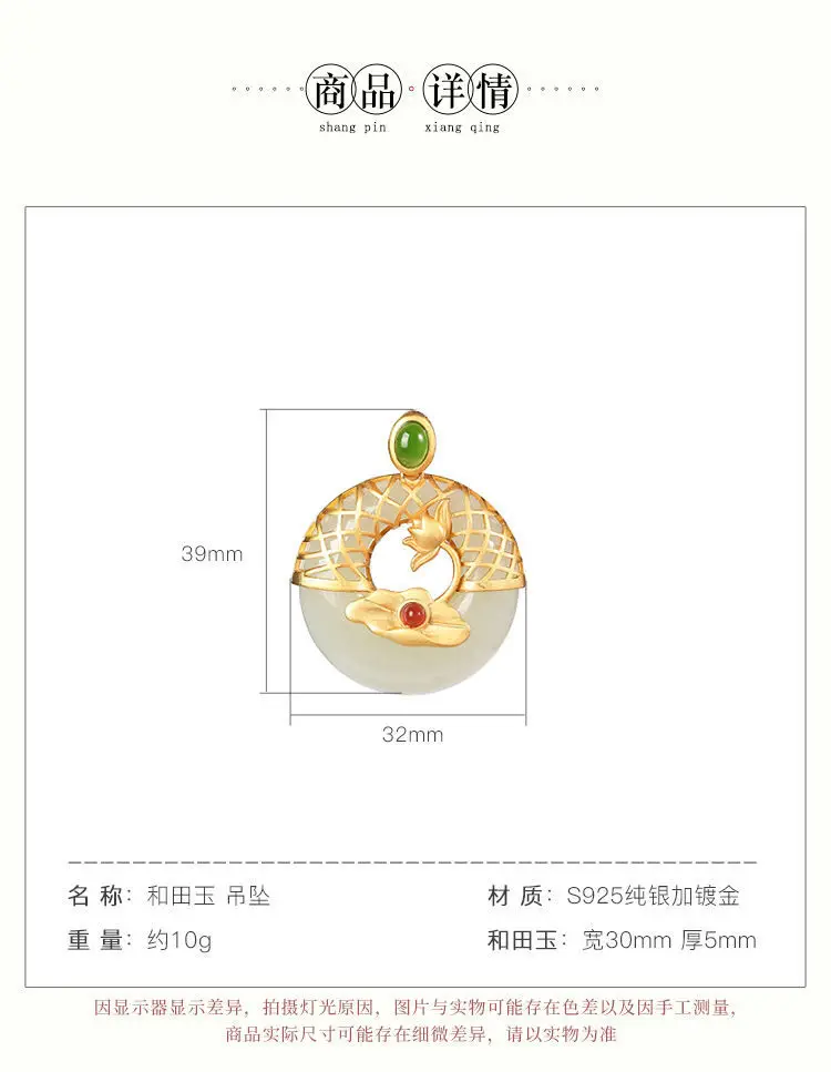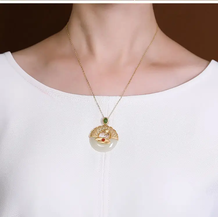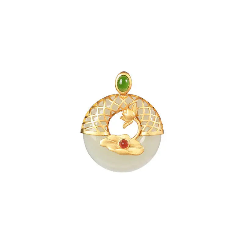 Новый S925 стерлингового серебра позолоченные натуральный Hotian и Нефритовой подвеской, в стиле ретро; В китайском Lotus Peace Пряжка Женская цепочка на свитер