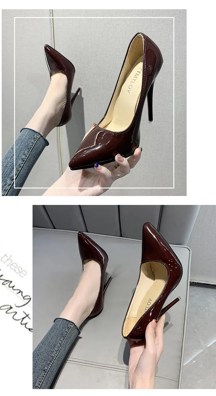 Женские туфли-лодочки на каблуке 12 см с острым носкомUS $23,12