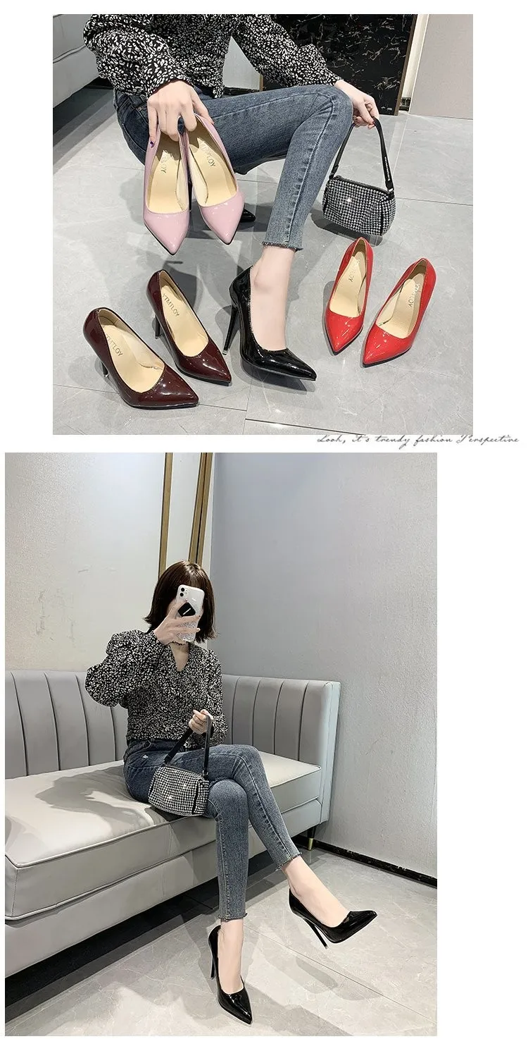 Черные туфли на высоком каблуке; Новинка 2021 года; Обувь для работыUS $20,52