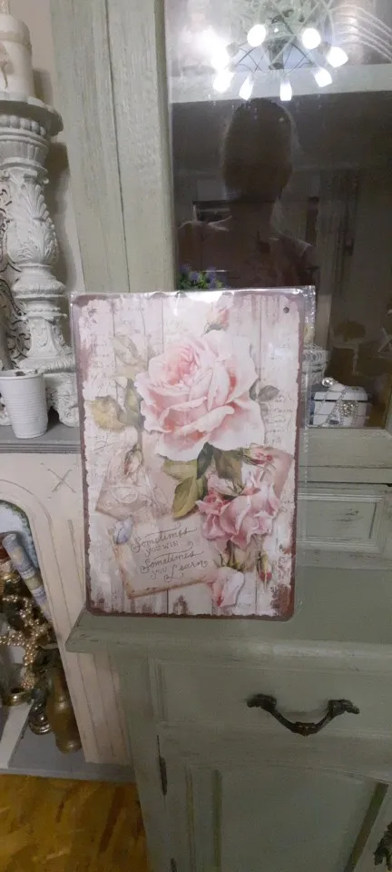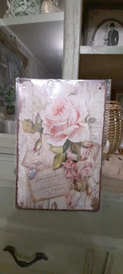 Цветы металлическая жестяная вывеска тарелки в стиле ретро Роза Пио...