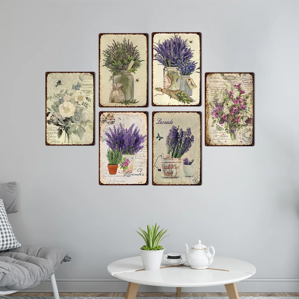 Лавандовая металлическая пластина, цветок, фермерский жестяной плак...