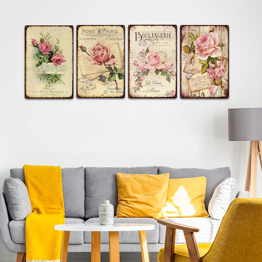 Винтажный цветной цветочный постер, металлические знаки, металличес...