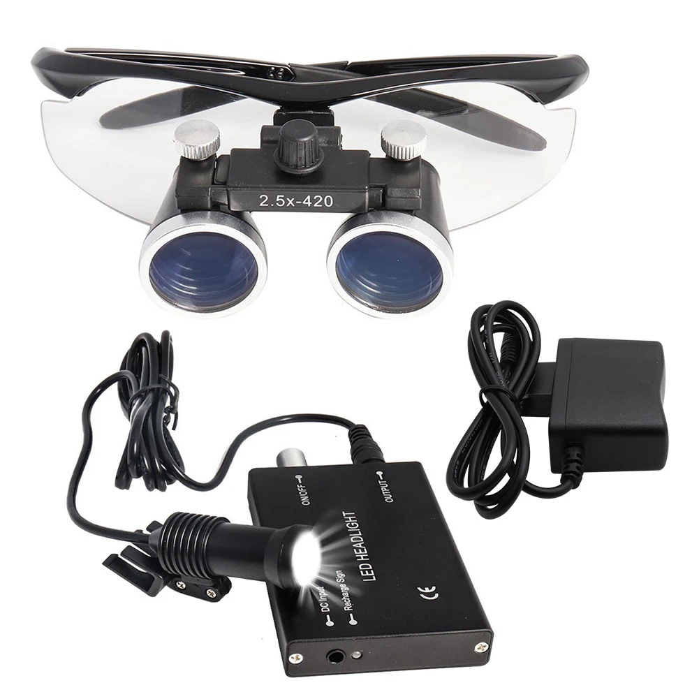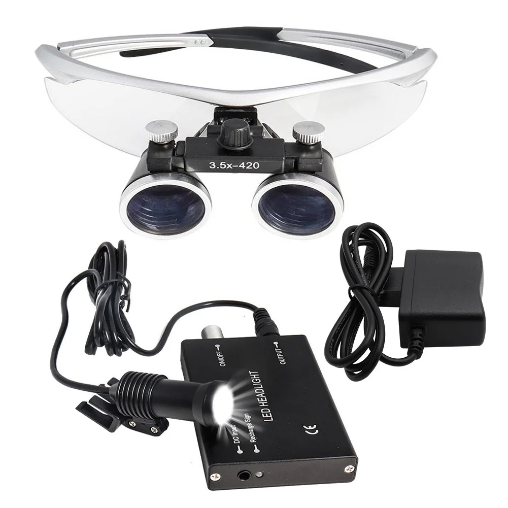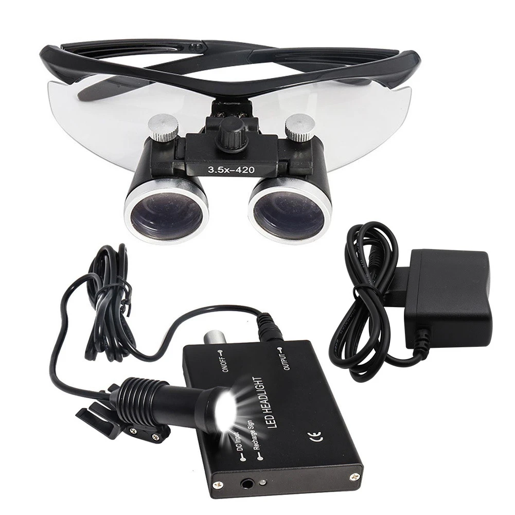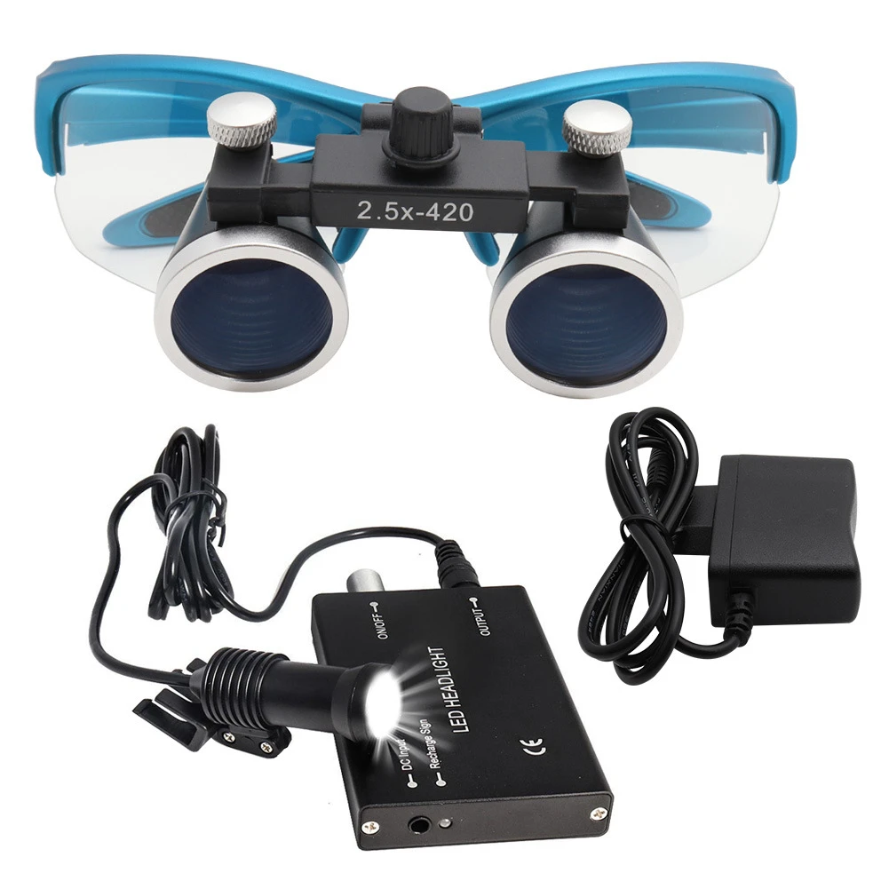 Стоматологическая лупа 2.5X 3.5X медицинская операция бинокулярная Лупа с 5 Вт Светодиодный фонарь перезаряжаемый литиевый аккумулятор увеличительные очки с лампойПерезаряжаемая литиевая батарея и регулировка яркости