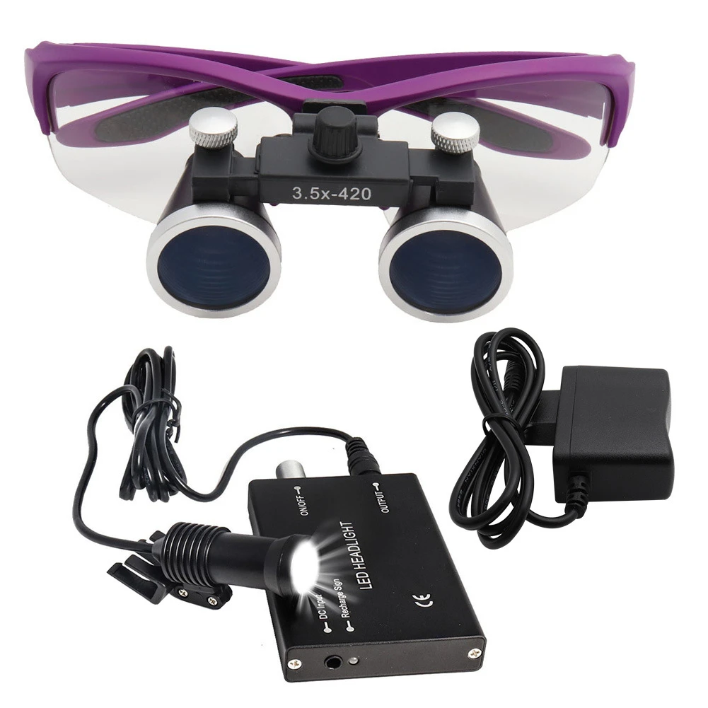 Стоматологическая лупа, 2,5x3,5x, с налобным фонарем, медицинская л...