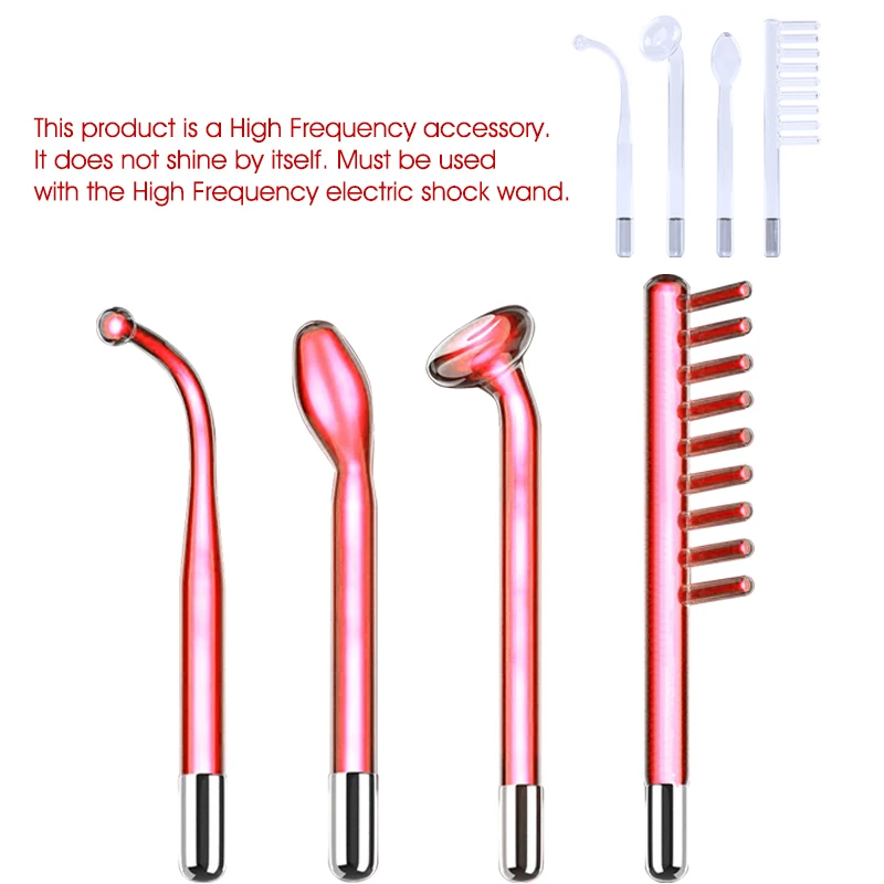 Высокочастотная насадка для лица с электродами, 4 стеклянных трубки, красный светильник, неоновый, фиолетовый, аргоновый светильник синий свет, смешивание, уход за кожей лица