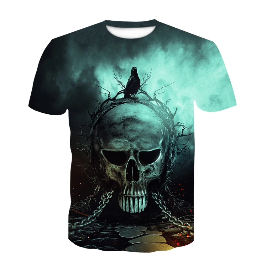 Футболка мужская с 3D-принтом черепа, модная рубашка в стиле панк, ...