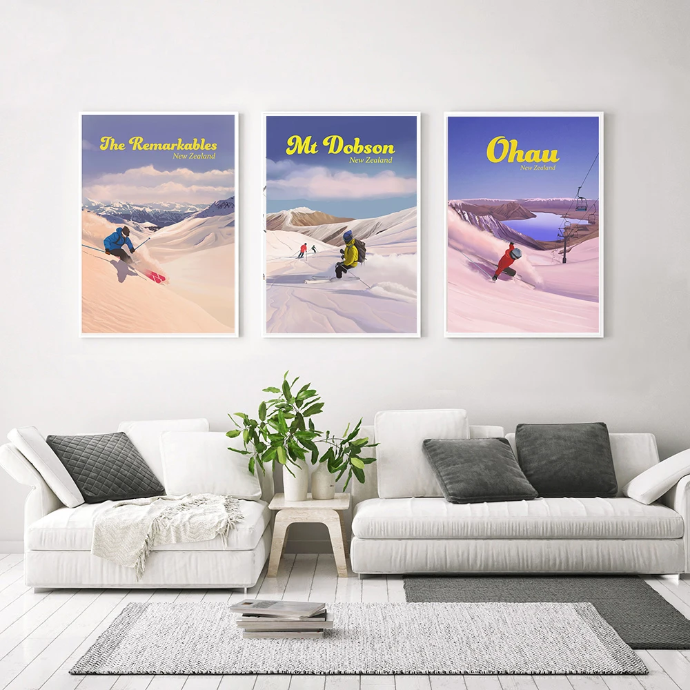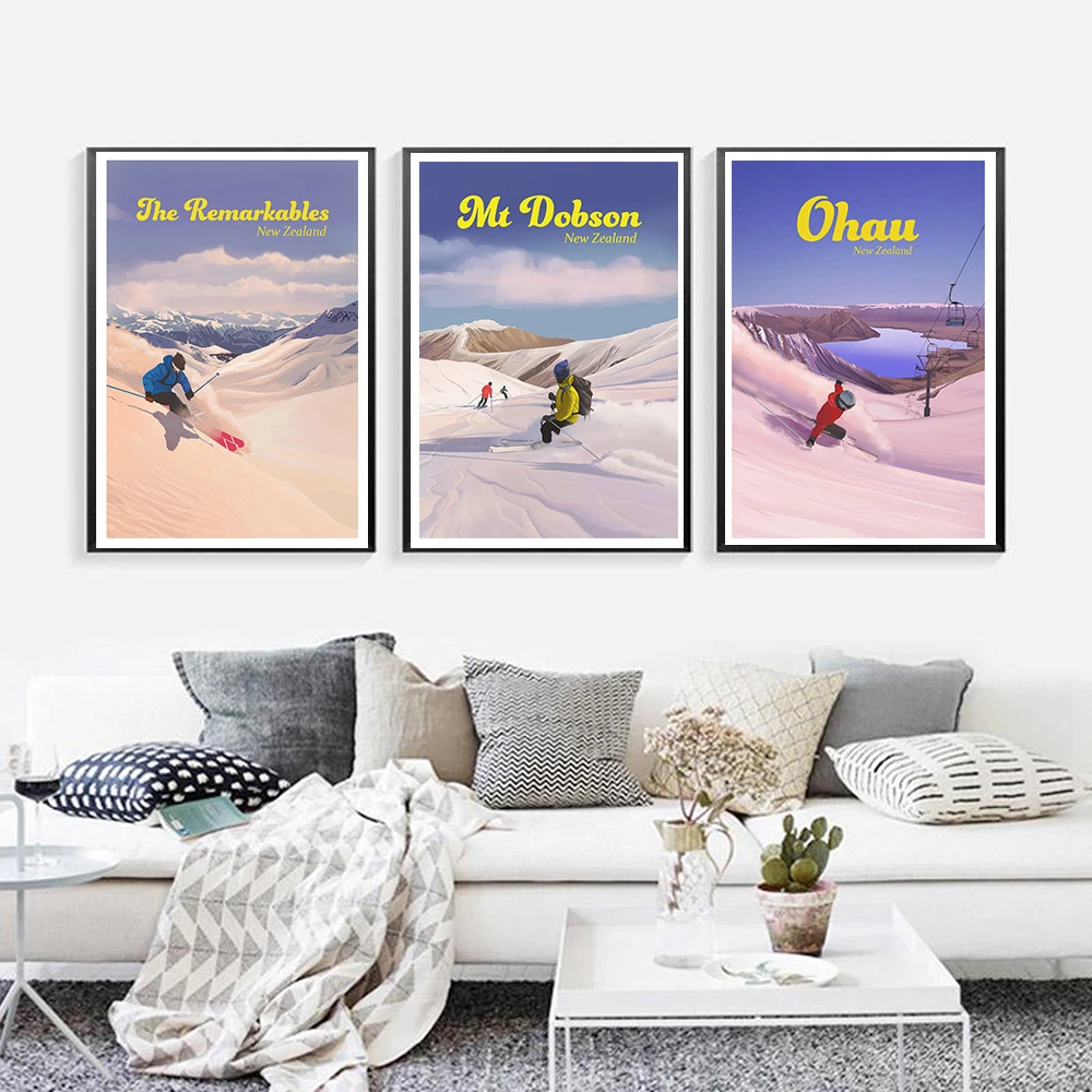 Винтажный постер для зимних видов спорта, плакат с художественной печатью для лыж и сноуборда, настенные картины, Картина на холсте для катания на лыжах, украшение для гор