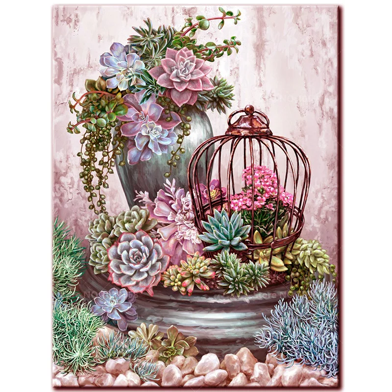 Алмазная 5D картина сделай сам с суккулентами, полноразмерная мозаика с квадратными и круглыми стразами, вышивка, цветок, кактус, стразы, украшение