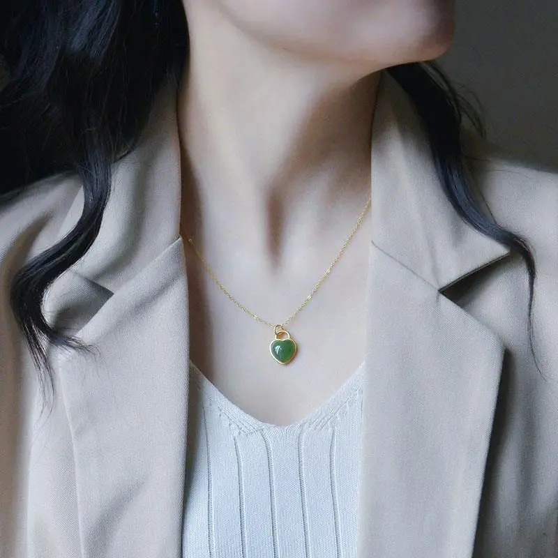 Подвеска в форме сердцсветильник из натурального нефрита, модное большое Брендовое ожерелье с позолоченным покрытием из яшмы в форме сердца, подарок для жены