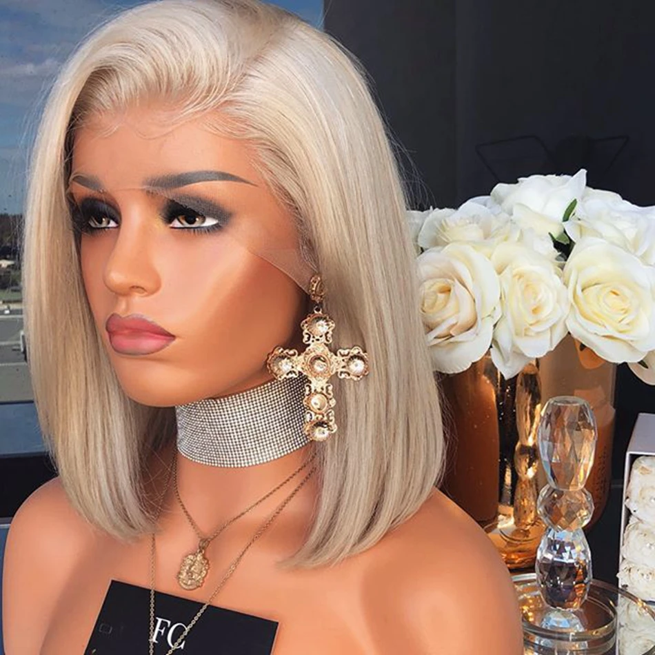 Перуанские парики без клея с предварительно выщипанными волосами, Платиновые светлые человеческие волосы, парики на полной сетке, плотность 150, парики с шелковым верхом, на сетке спереди, парики с неповрежденными волосами