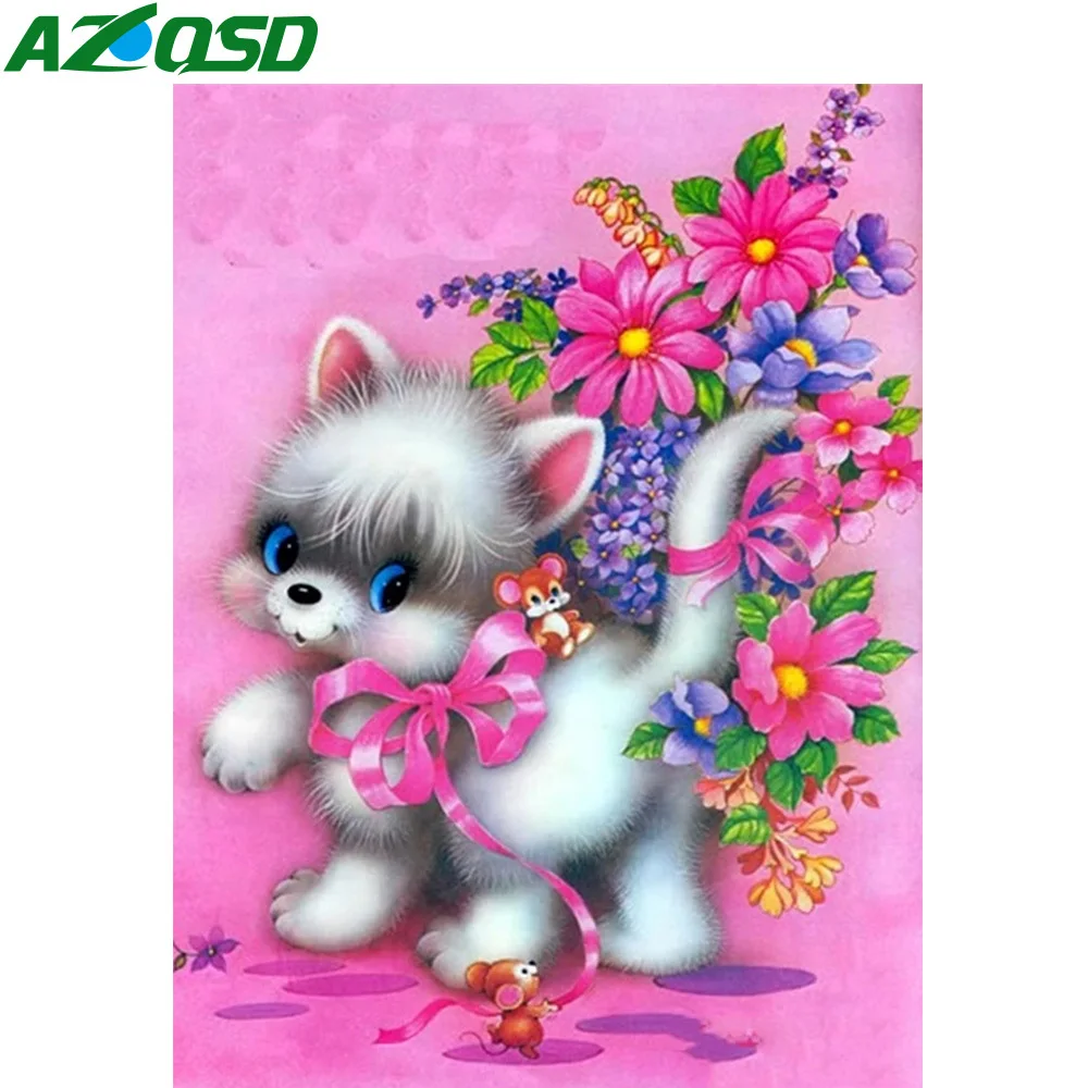AZQSD полная квадратнаякруглая дрель Алмазная вышивка мышь кошка мозаика ручной работы подарок алмазная живопись украшения для дома в виде животных