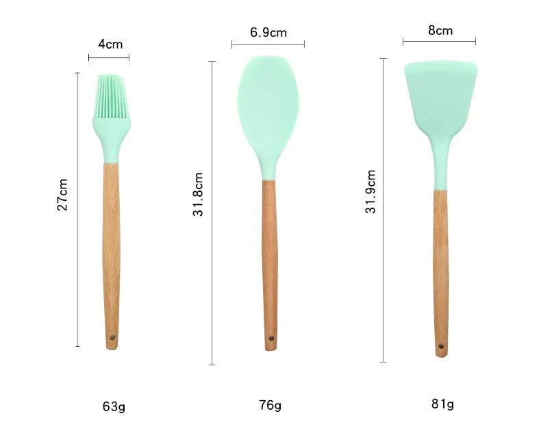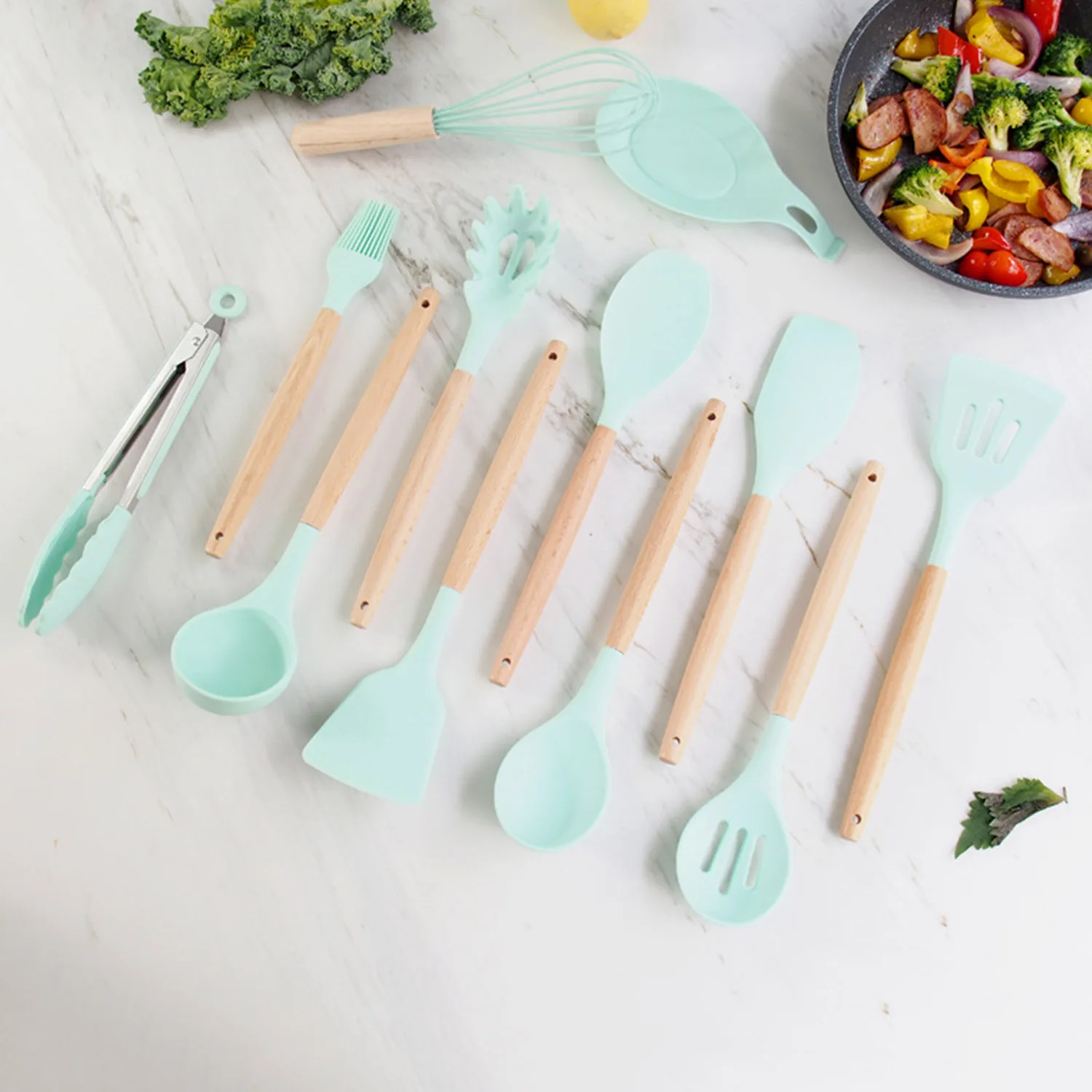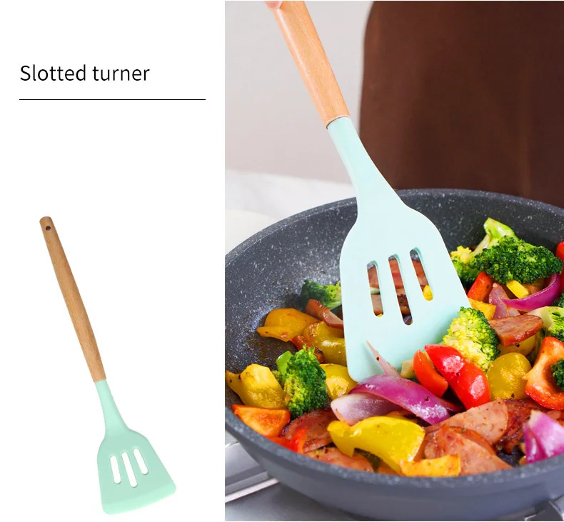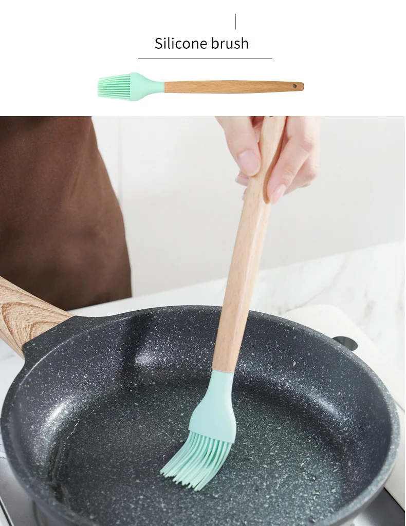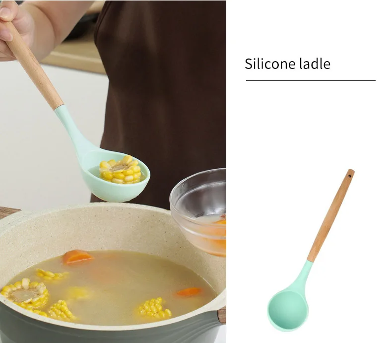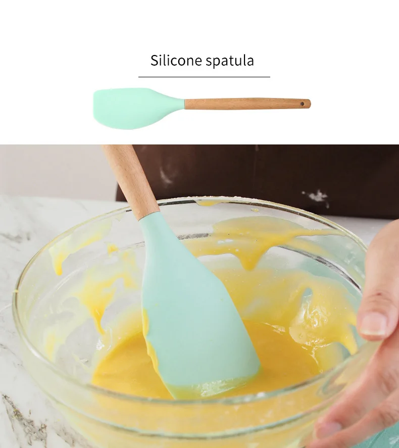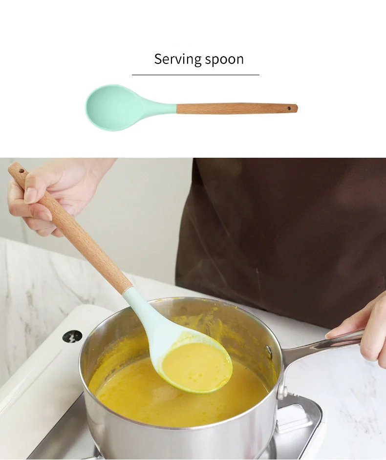 Набор силиконовых кухонных принадлежностей, антипригарная ложка с деревянной ручкой, лопатка, венчик для яиц со специальным термостойким дизайном, кухонное приспособление
