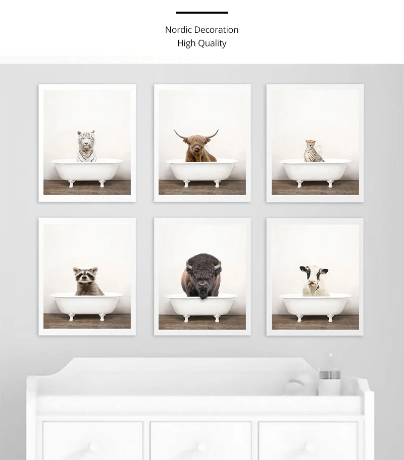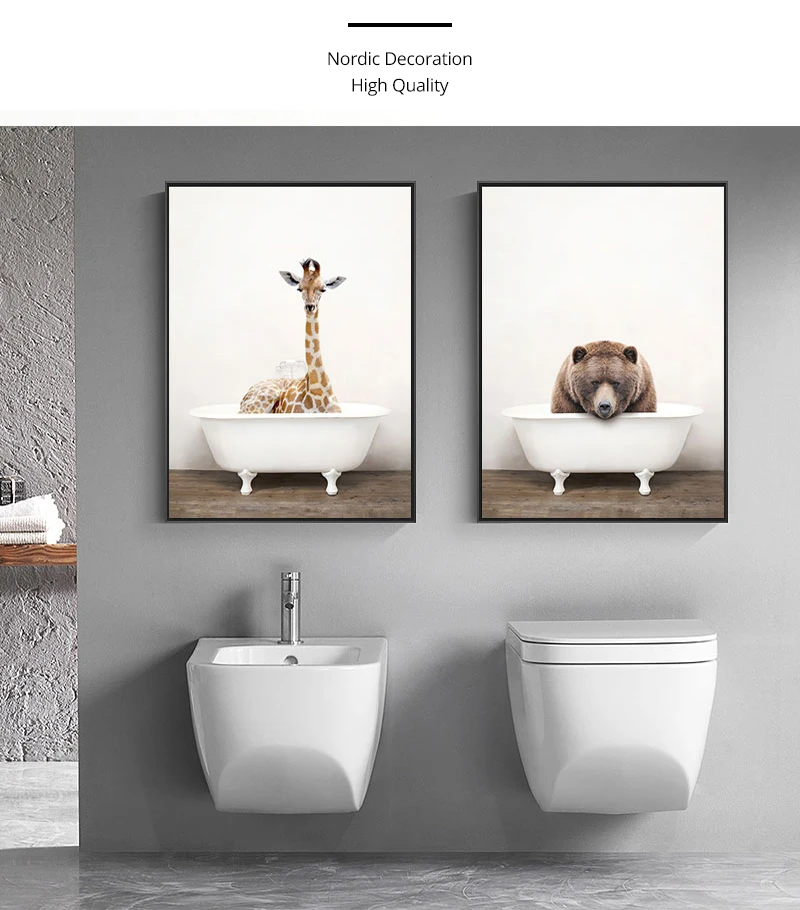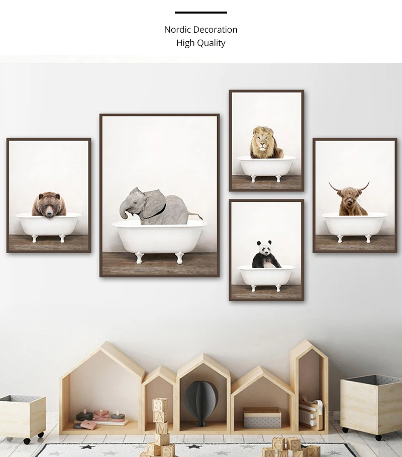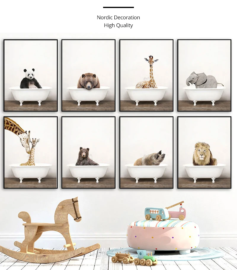 Настенные картины для детской комнаты, постеры на холсте с изображением животных, слона, Льва, зебры, ванной, туалета, декор детской комнаты