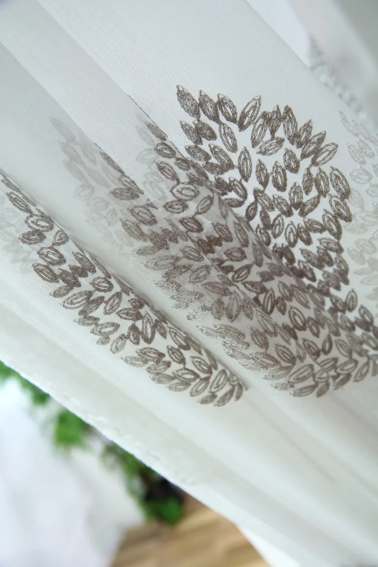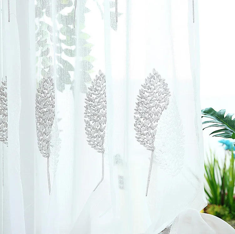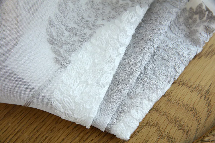 Тюлевые блестки с белыми и серыми листьями для гостиной, спальни, вышитые занавески на дверь окна