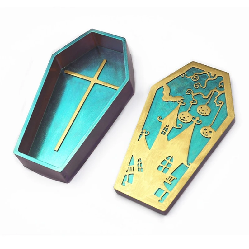 4 Форма Хэллоуин гроб формы коробка гроба силиконовые формы Череп Призрак дом ящик для хранения смолы пресс-форма для литья комплект художественных ремесел