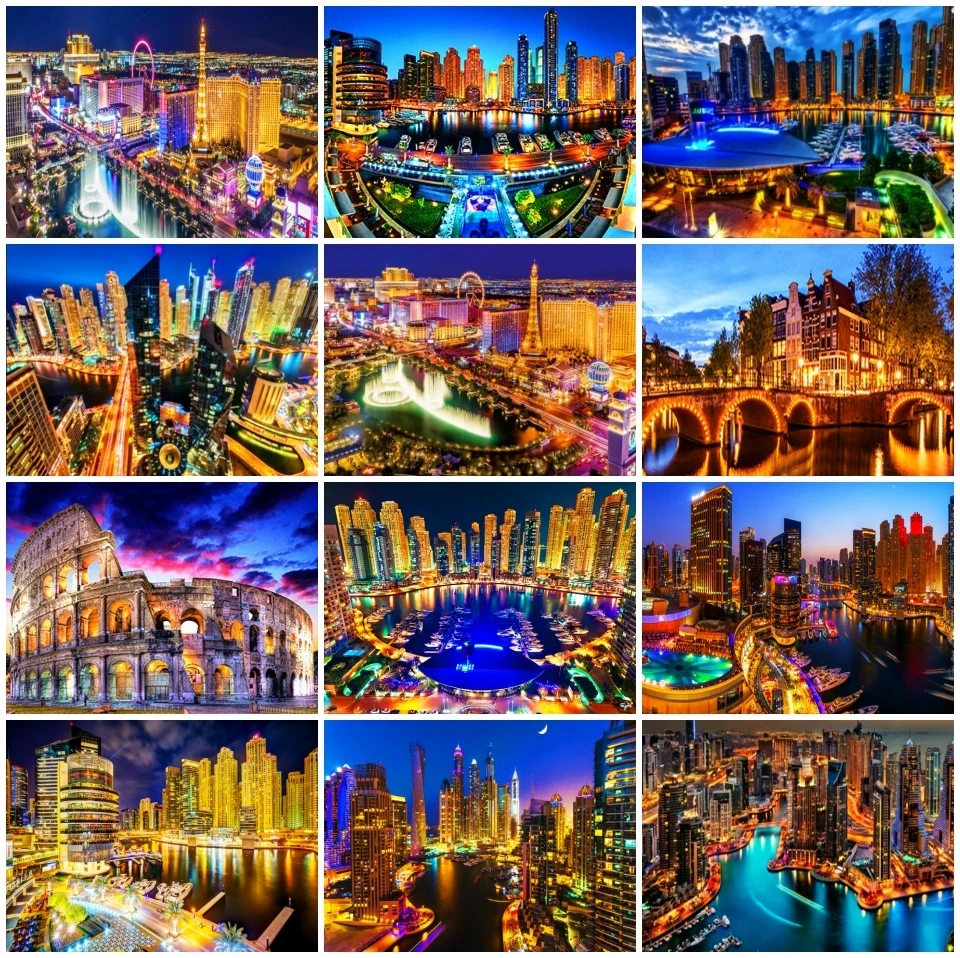 AZQSD полная квадратная дрель Алмазная вышивка алмазная живопись с изображением городского пейзажа Пейзаж Вышивка крестом Стразы Мозаика Декор для дома