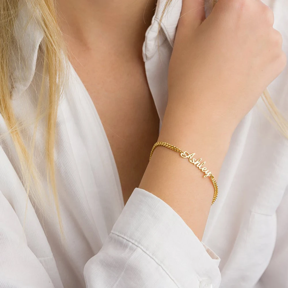 Персонализированный браслет для женщин, Золотая табличка с надписью на заказ, кубинский браслет-цепочка, ювелирные изделия из нержавеющей стали, подарок для девушки