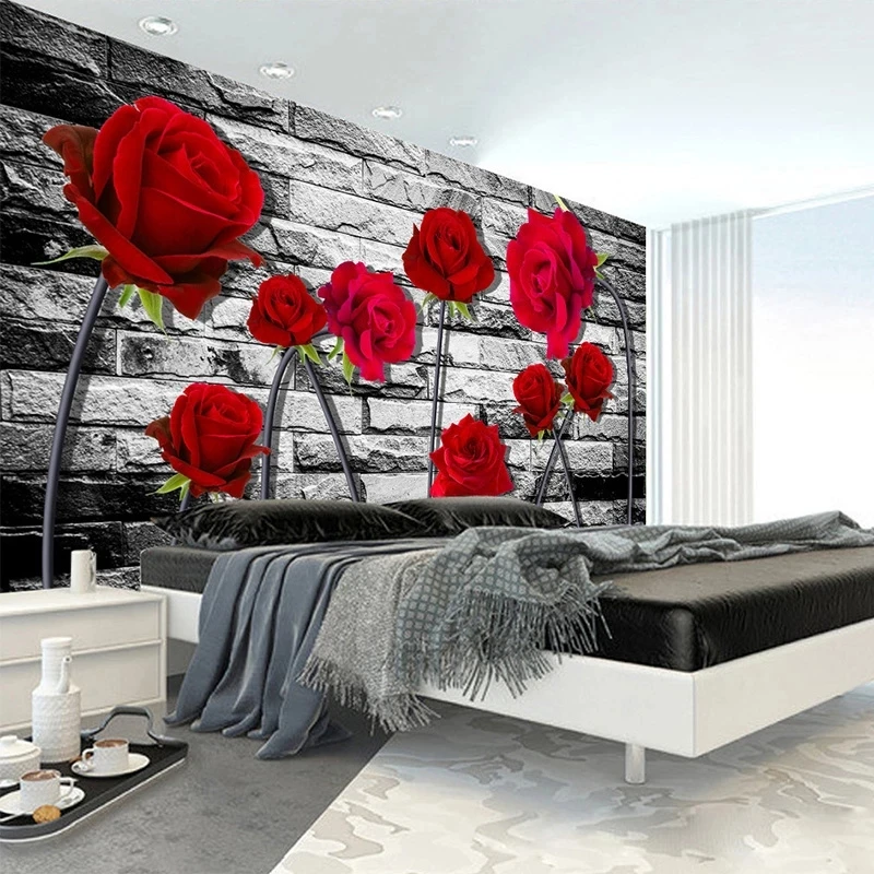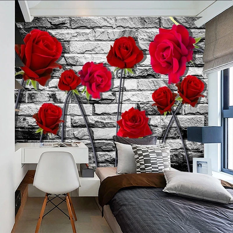 Оригинальные 3D Самоклеящиеся обои, романтические свежие красные розы, винтажные кирпичные Настенные обои для гостиной, спальни, фоновые водонепроницаемые обои